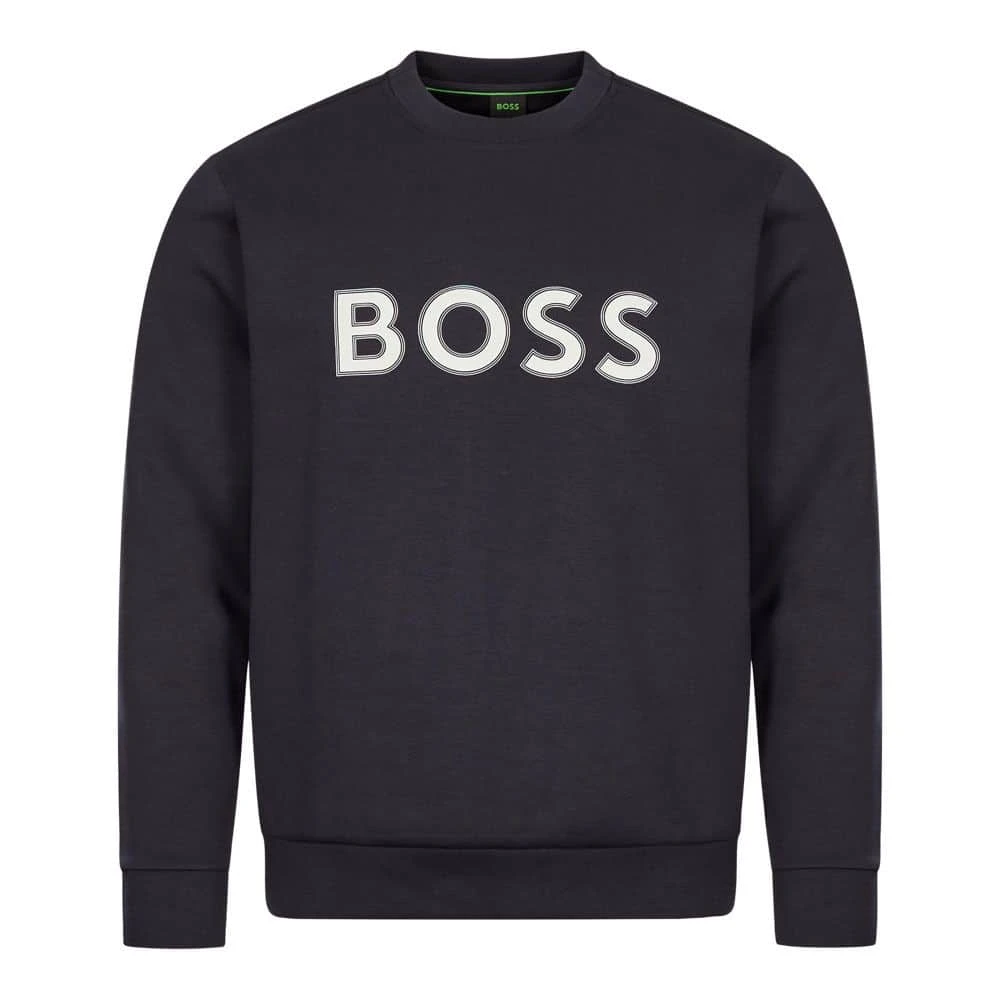 Constructed with at least 60% recycled polyamide, it showcases an HD logo print, adding a touch of elegance. The Salbo Sweatshirt, featuring a crew neck, long sleeves, and self-fabric cuffs, presents a casual yet polished aesthetic – ideal for laid-back outings or lounging in sophistication. Embrace fashion that makes a positive impact with the BOSS Salbo Sweatshirt.