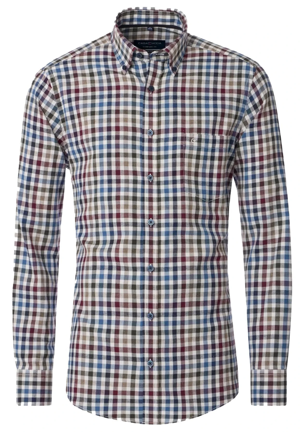 Comfort-fit button down collar shirt by Casa Moda in an all-over pattern with a long-sleeved, button-down collar, button placket and a patch chest pocket. Material: Cotton 100%