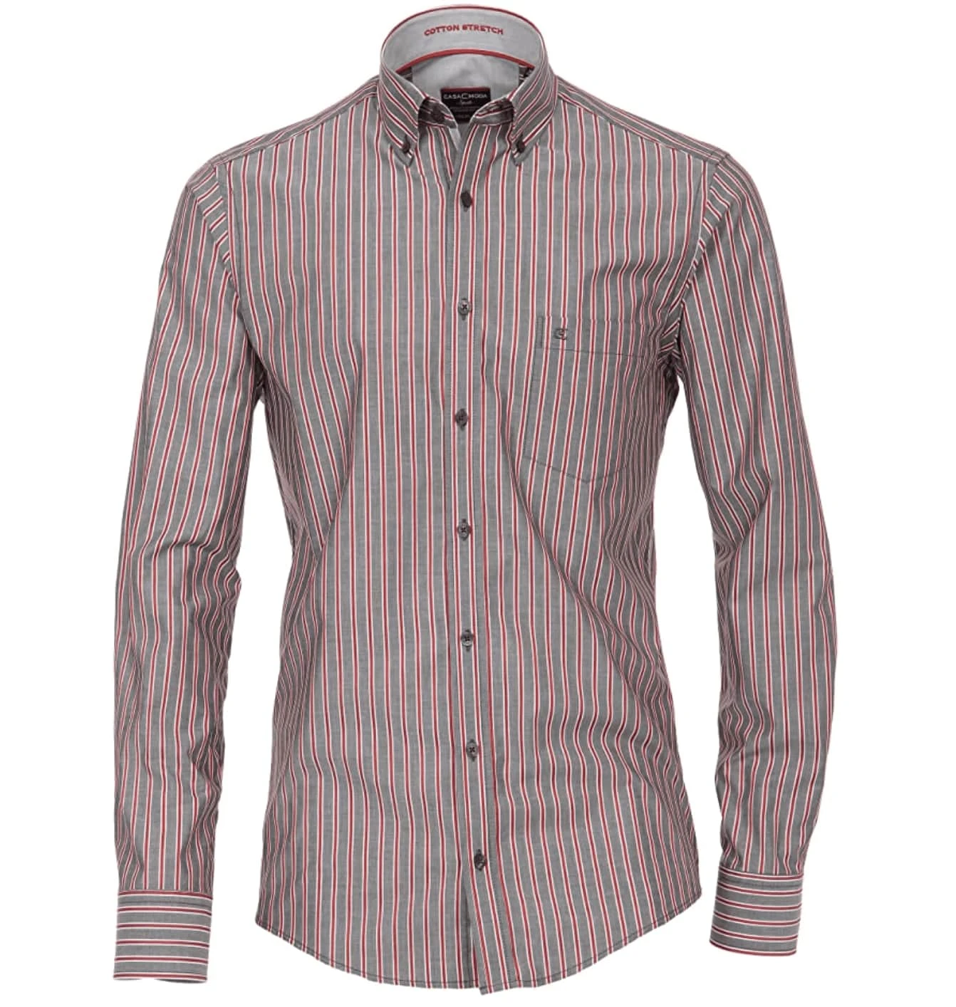Casa Moda Long Sleeve Shirt Casual Fit- Grey/ Burgundy Stipe