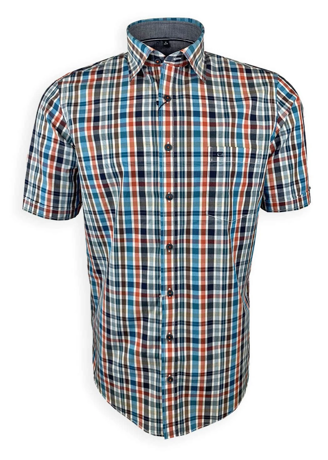 Casa Moda Men’s Short Sleeve Check Shirt Casual Fit Desert Sage