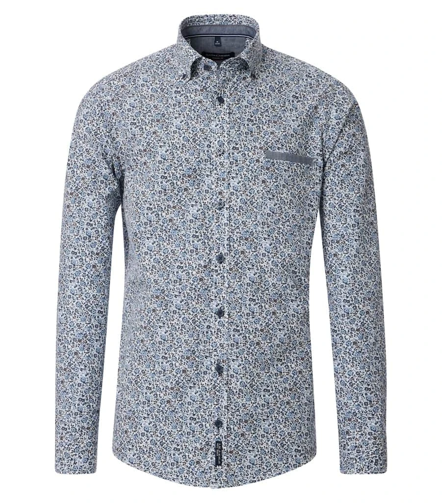 Casual-fit button down collar shirt by Casa Moda in an all-over pattern with a long-sleeved, button-down collar, button placket and a patch chest pocket. Material: Cotton 100%