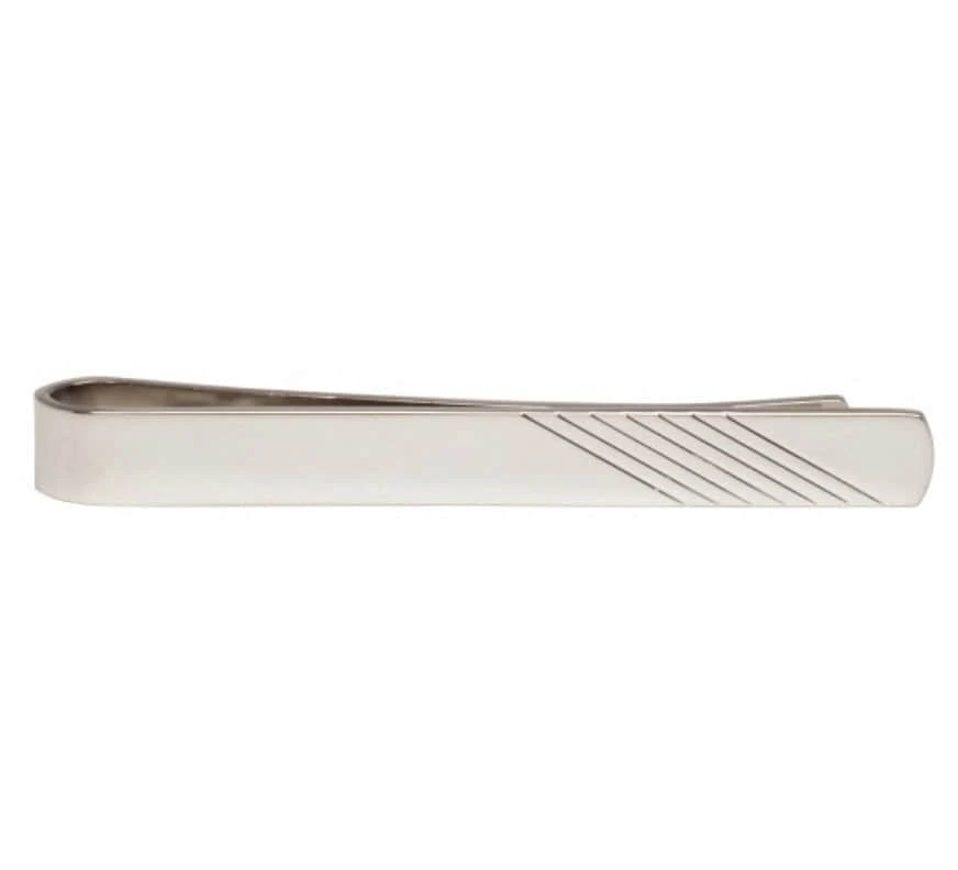 Dalaco Diagonal Lines on End Rhodium Plate Tie Slide