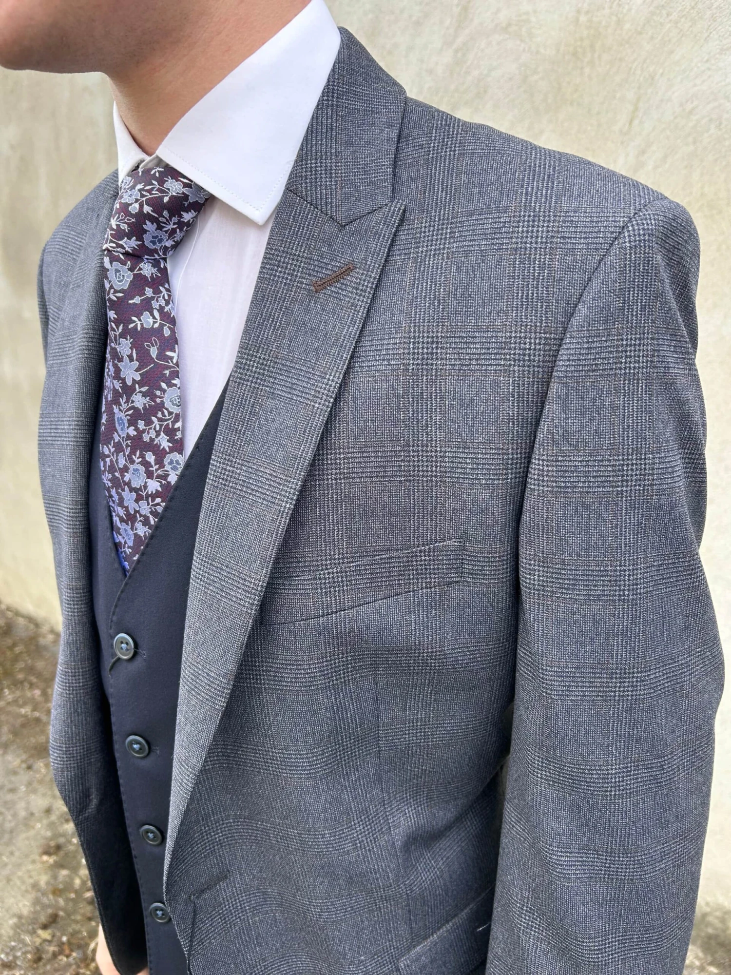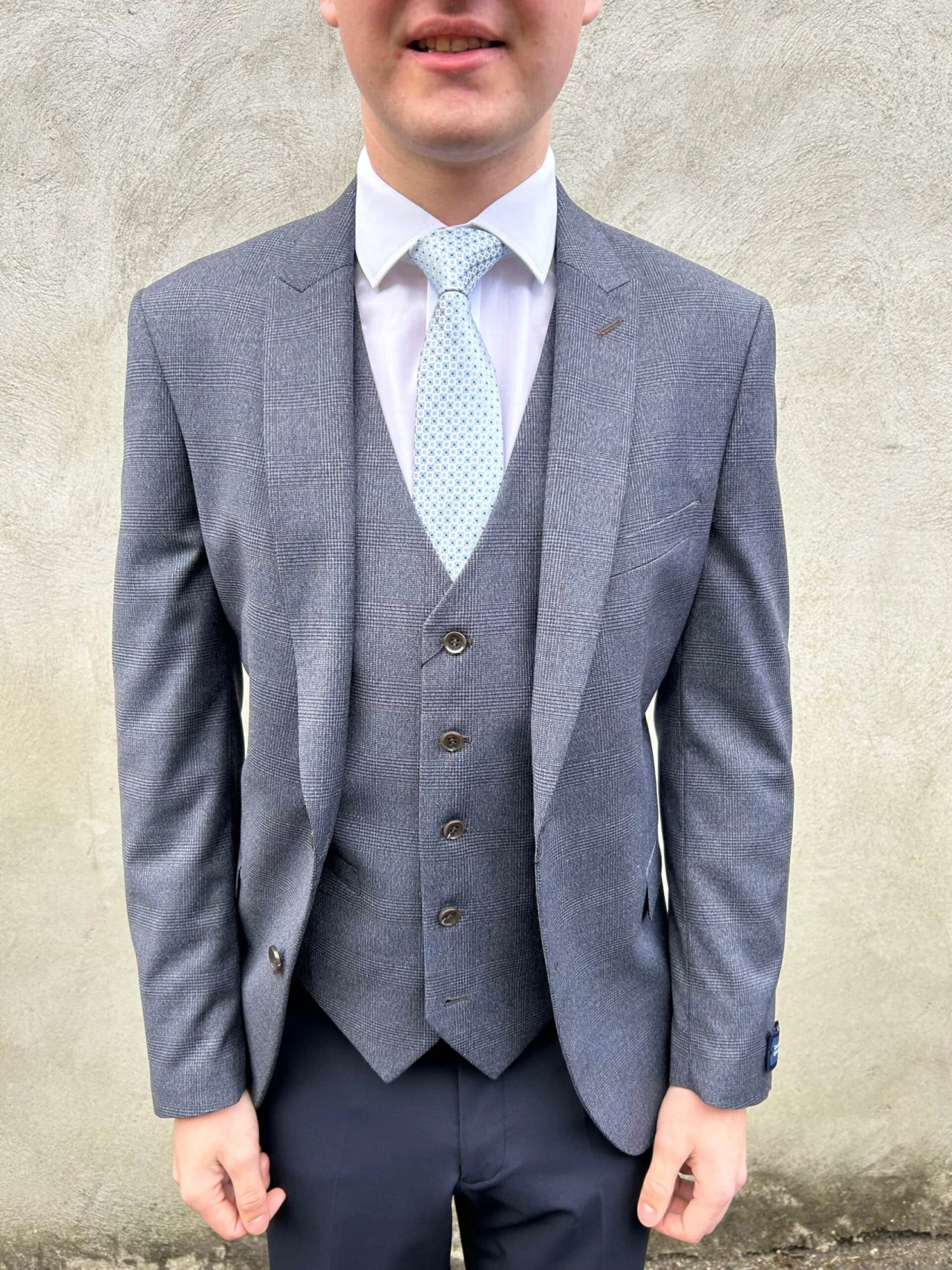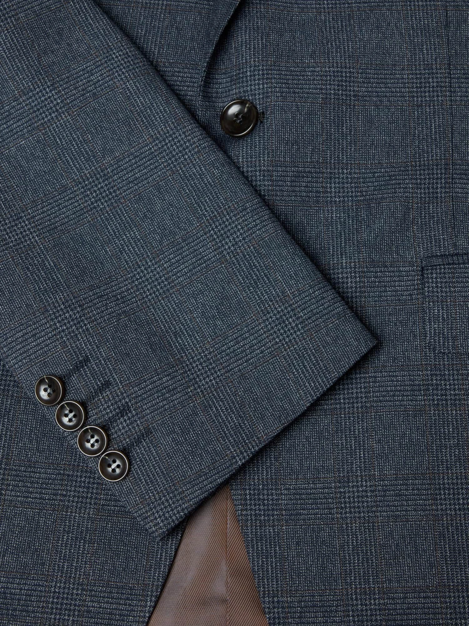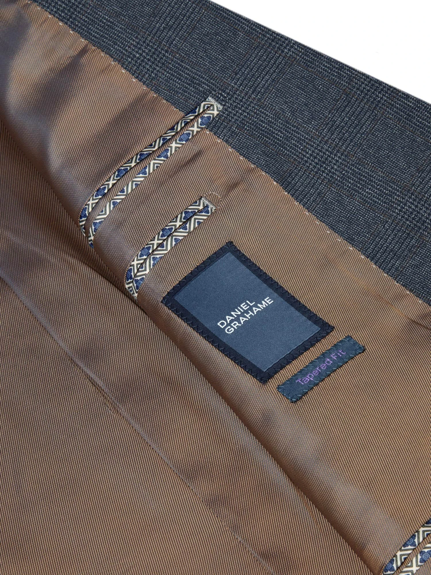 Can be worn with matching waistcoat or with any plain navy waistcoat and trousers.