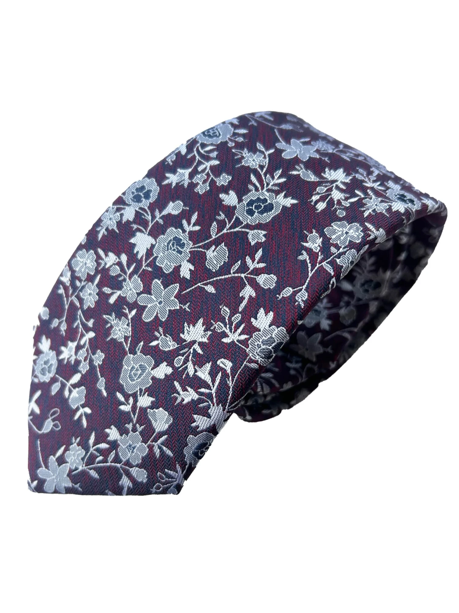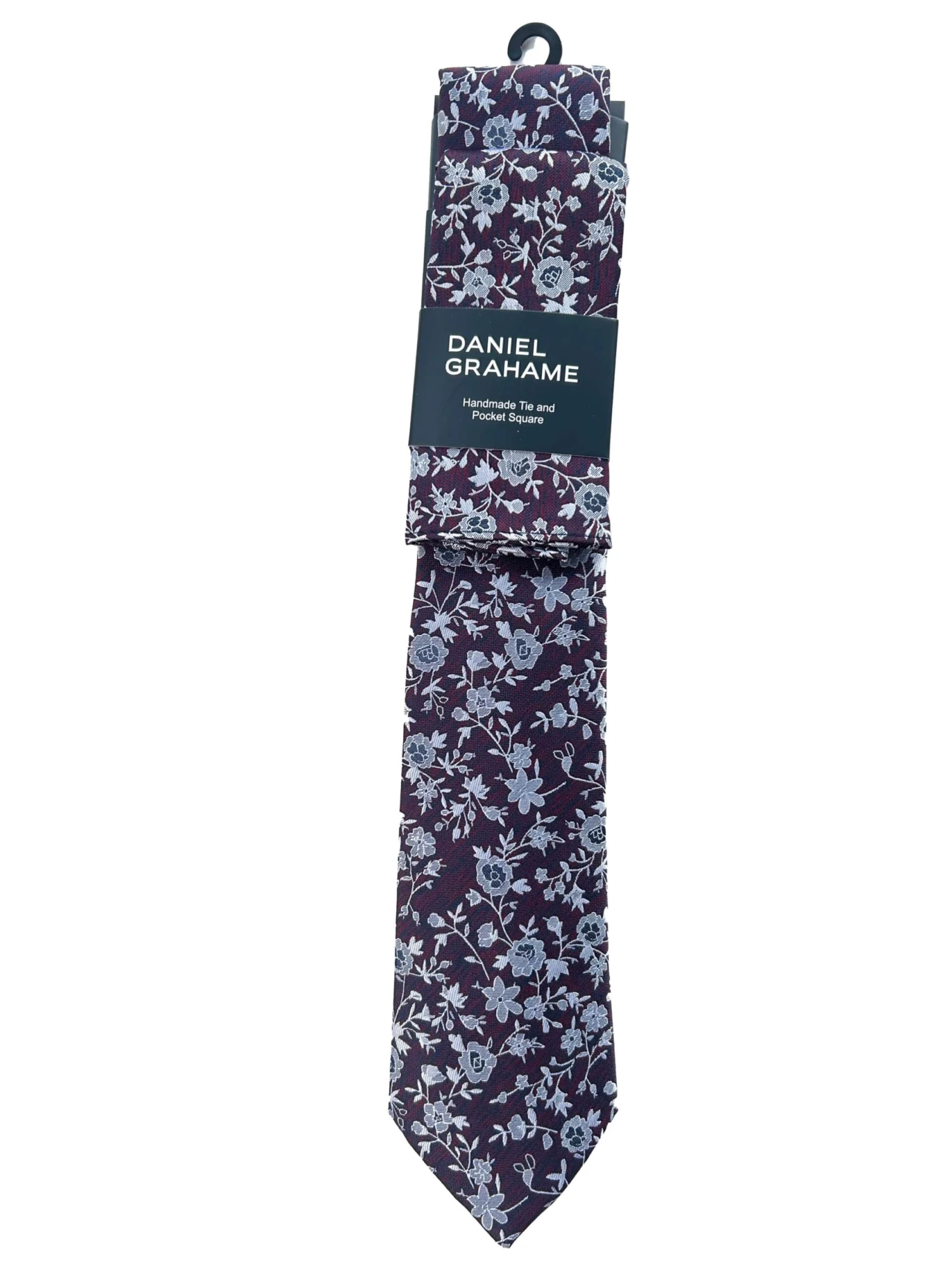 Daniel Grahame Tie & Pocket Square Set Burgundy/Navy Floral