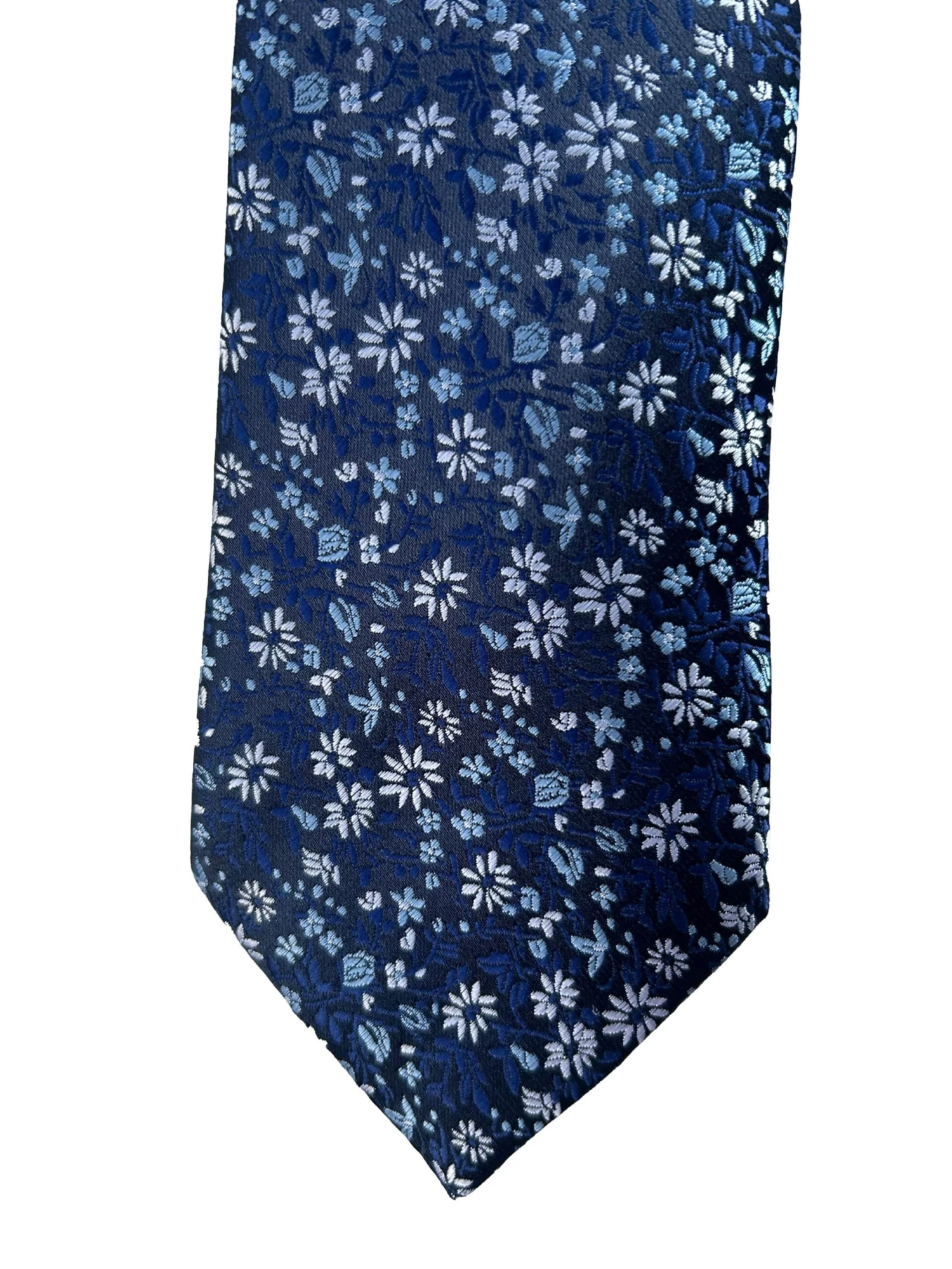 Daniel Grahame Tie & Pocket Square Set Navy/Silver Floral