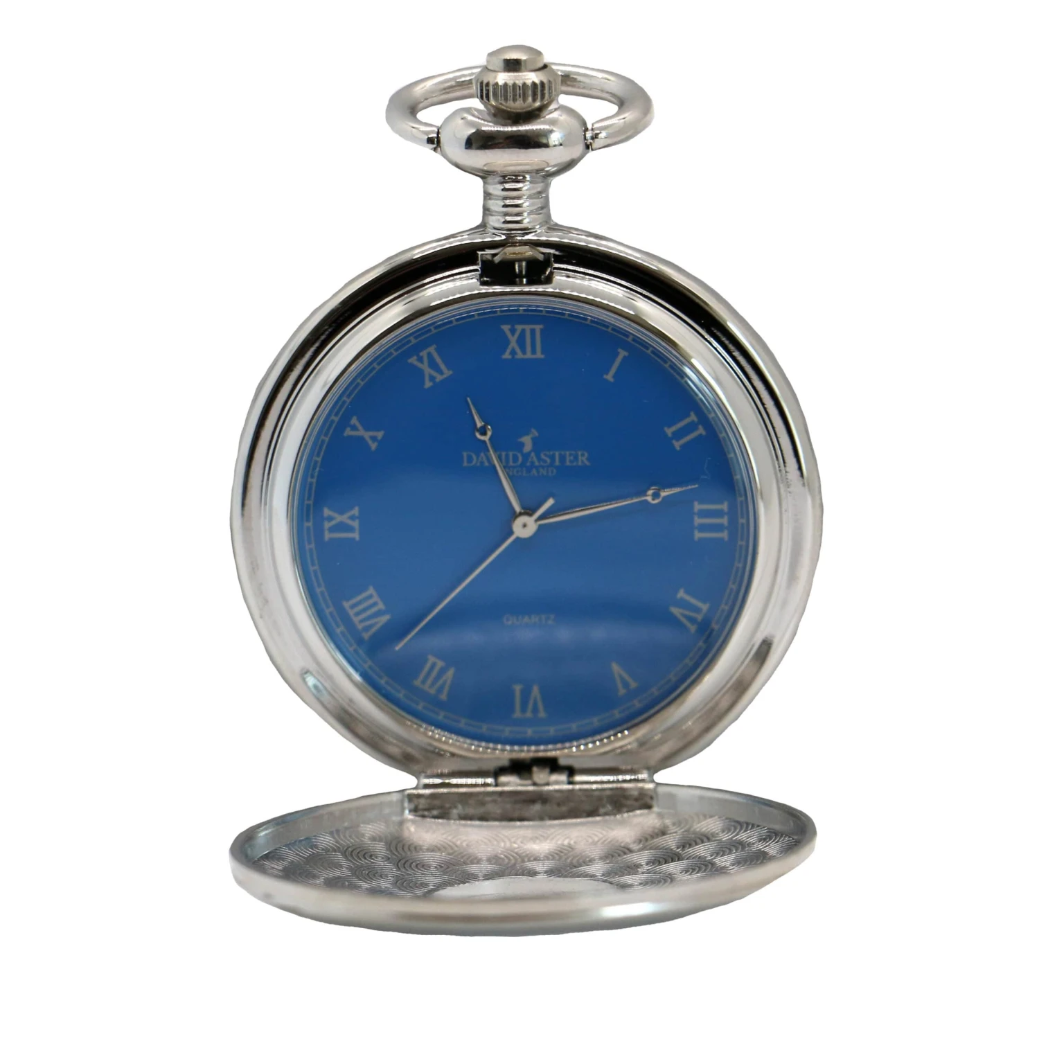 Chrome plated Quartz Half Hunter Pocket Watch with striking blue face.