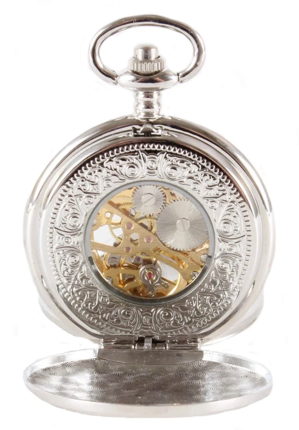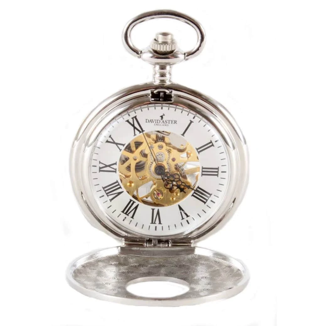 DAVID ASTER SILVER PATTERNED HALF HUNTER MECHANICAL POCKET WATCH