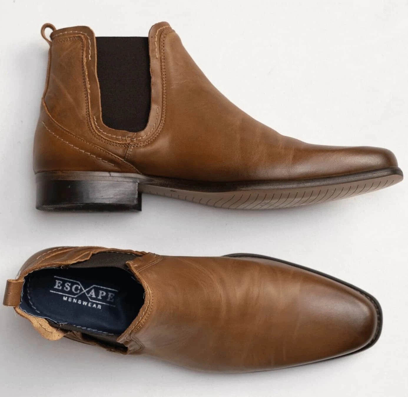 Smart Chelsea style boot from Escape for Men. These boots feature contrasting elasticated side gussets, detailed stitching and subtle tones at the perfectly shaped toe giving the boot more depth and character. Includes a loop at the rear to help with ease of fitting. Can be worn with smart trousers or more casually with Jeans for that night out.
