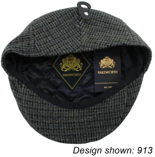Failsworth Mens Worcester Wool Flat Cap from Winter Hats 4U. From the Failsworth Hats Autumn/Winter Collection, this classic flat cap is made from a wool blend with an ethical polyester lining. Available in various checked designs and seven sizes (55-61cm). Premium fully lined cap with formed visor by Failsworth, a famous UK hat maker that has been making high quality headwear for over 100 years. Made from Wool Blend (53% Wool, 45% Polyester, 2% Acrylic) with a recycled Polyester inner. Lightly sponge clean with warm soapy water.