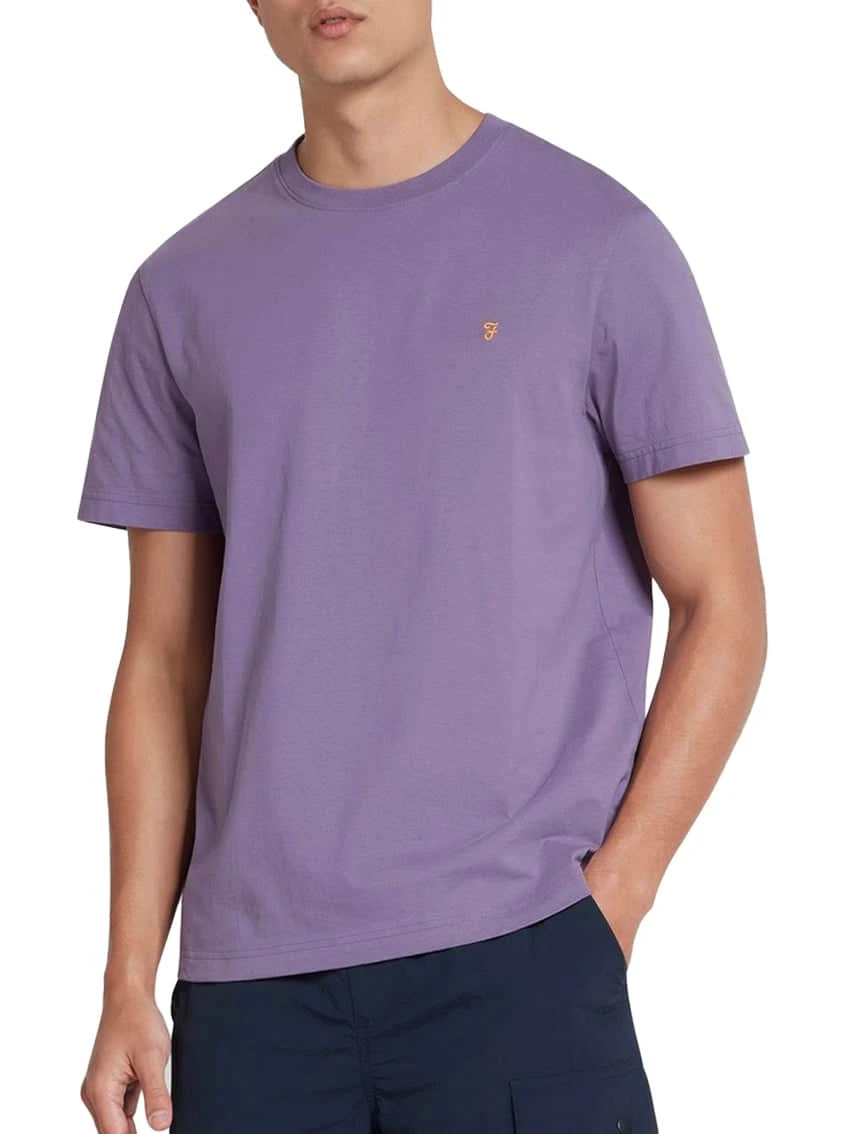 Introducing the Farah Vintage Danny Short Sleeve T-Shirt in a refreshing shade of blue—an embodiment of casual sophistication. Crafted from soft and breathable cotton jersey, this shirt ensures a comfortable fit for all-day wear. The ribbed crew neck and short sleeves enhance the classic appeal, offering a timeless silhouette that effortlessly merges comfort with style. The signature Farah Vintage logo, meticulously embroidered in a captivating golden yellow hue, graces the left side of the chest, adding a touch of iconic flair to the shirt.