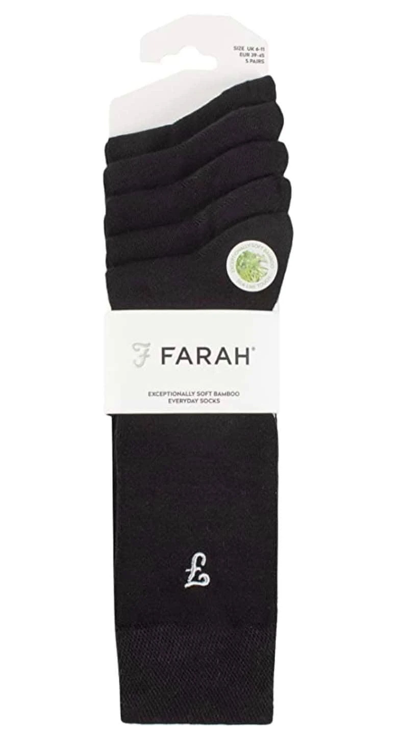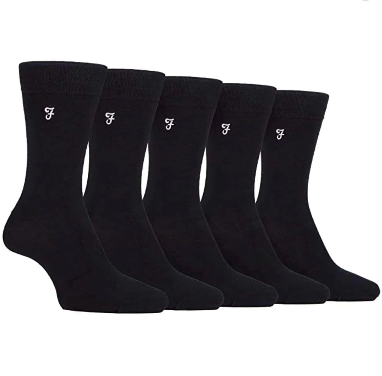 Farah Men’s Socks Plain Bamboo 5 Pack Black