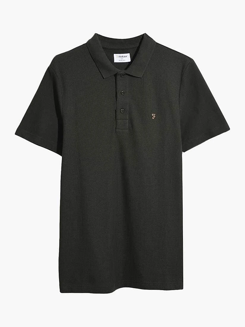 Introducing the Farah Men’s Forster Short Sleeve Polo Shirt in the rich Evergreen shade – an essential addition to your wardrobe that effortlessly combines classic style with modern comfort. This polo shirt, identified by the product code F4KSC017, is a testament to Farah’s commitment to timeless fashion.