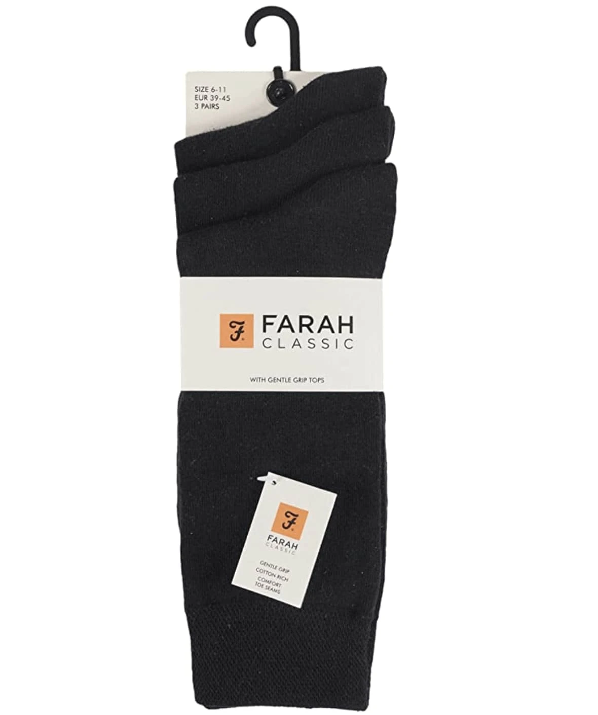 Farah Plain Men’s Cotton Socks 3 Pack Black 6-11 UK