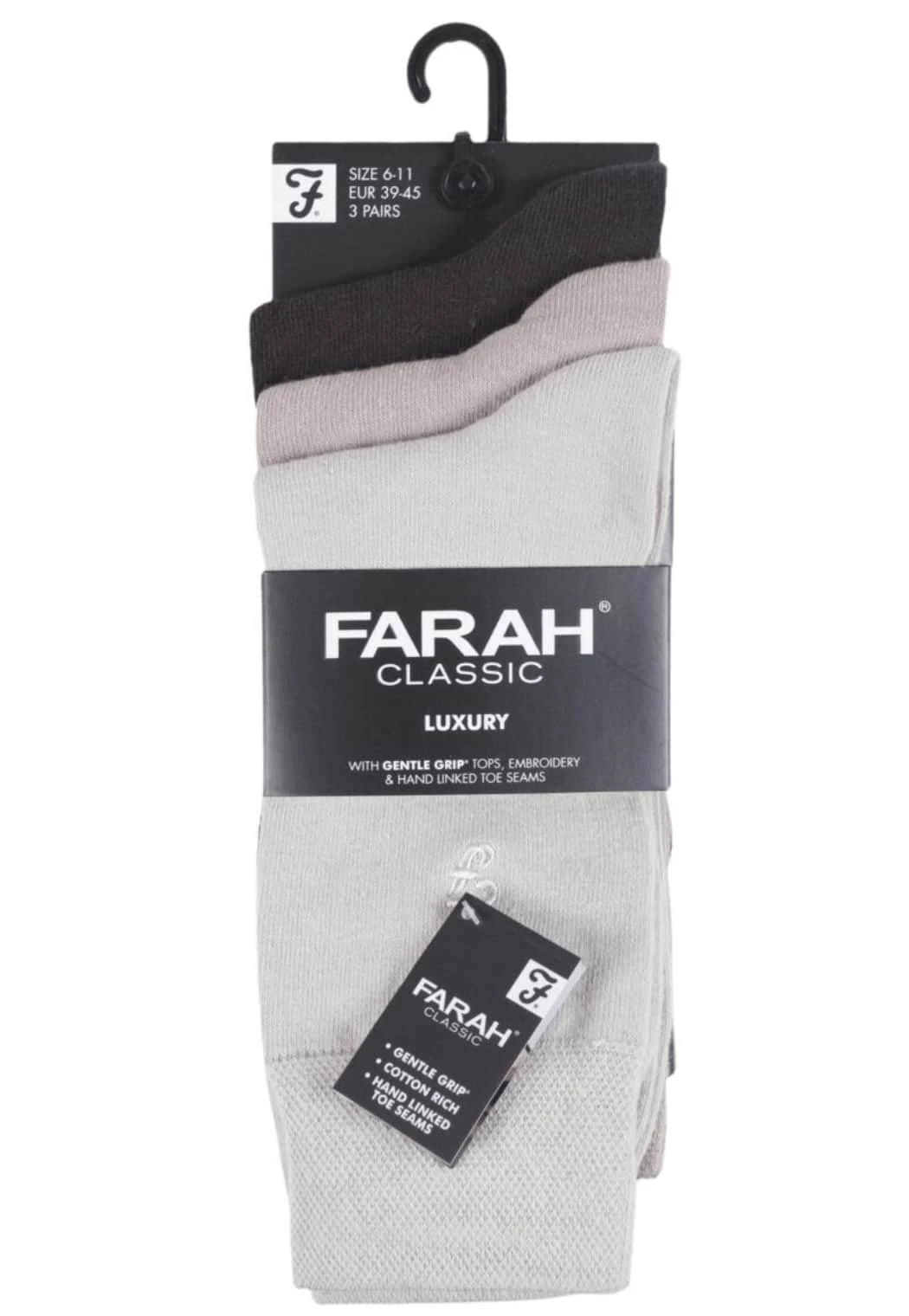 Secure they might be, but socks with tight, constricting elastic tops can be uncomfortable over long periods of wear. These Farah Plain comfort cuff Socks are designed to fit without undue pressure, manufactured with a pique top that holds the calf without the use of elastic.