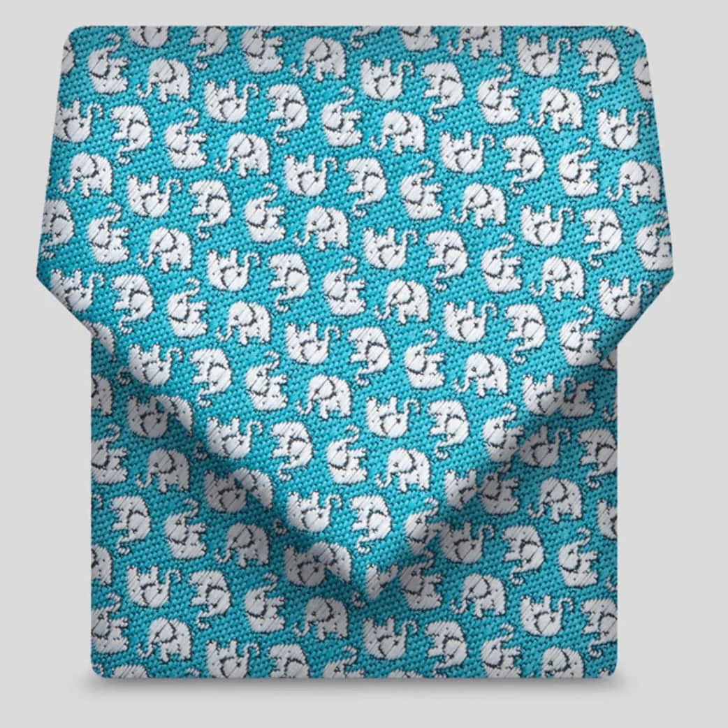 A fun Folkespeare patterned tie is always a great addition to add to your tie collection. This bright sea blue with small elephants is sure to get people’s heads turning. When you want to make a statement, there’s no better way of doing it than a bright colour and a pattern. Pop on this tie and you will be sure to make a great first impression.