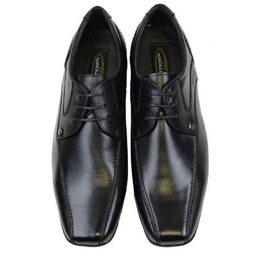 Snowden from Front offers you a luxury smart black leather double lace up shoes with hidden eyelets quality rubber sole and stitch detailing. Comfortable classic durable and a great price – The perfect shoe for you.