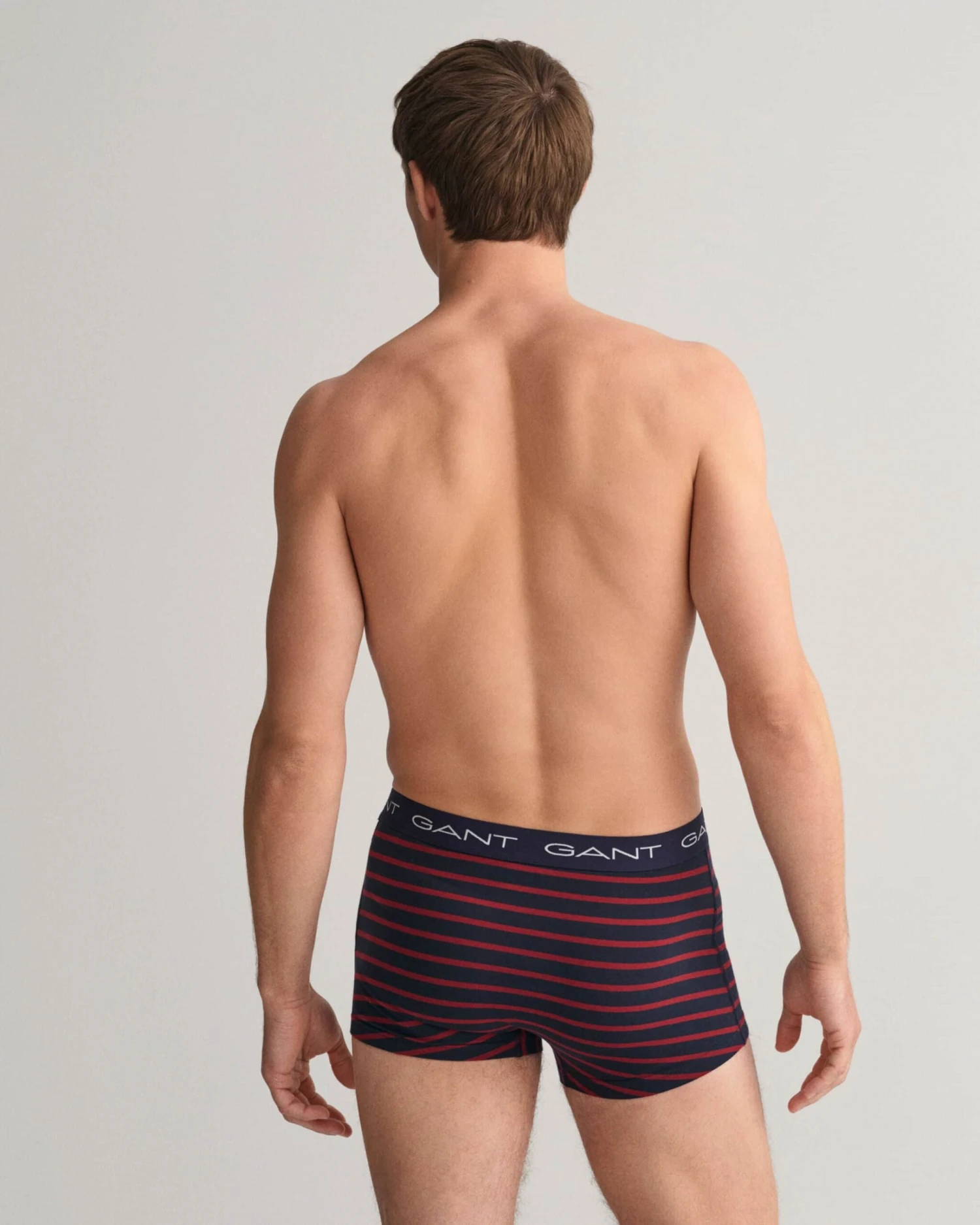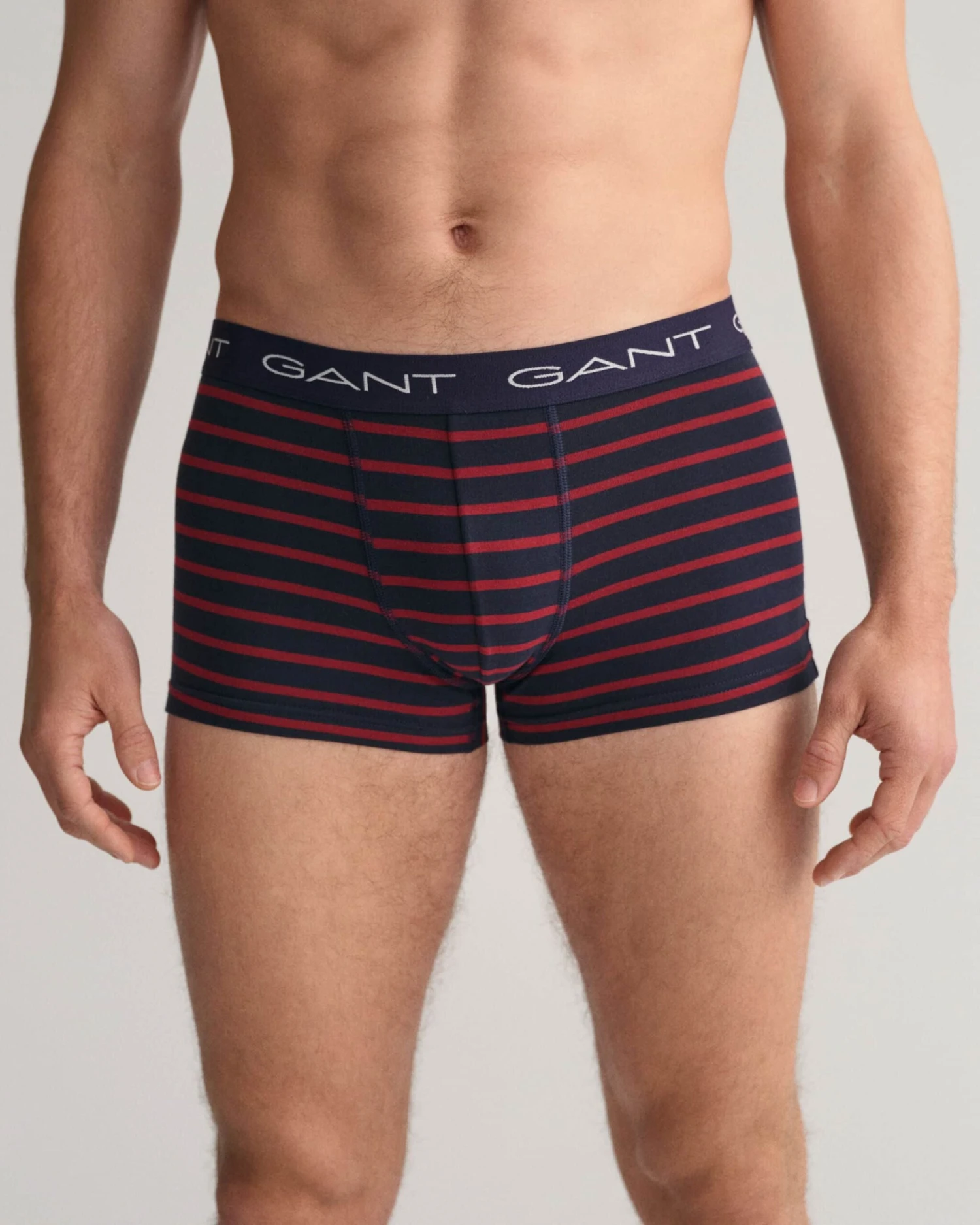 A three-pack of trunks crafted in cotton jersey with a hint of stretch. Cut in a slim fit with a short leg length and a regular waist, these trunks feature two solid color pairs and one pair with yarn-dyed stripes. All trunks have a jacquard-knitted elastic waistband with repeated GANT logotypes.