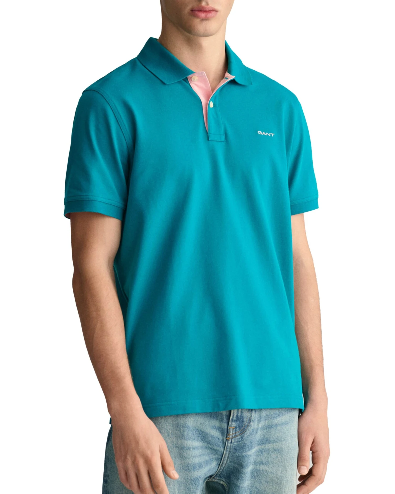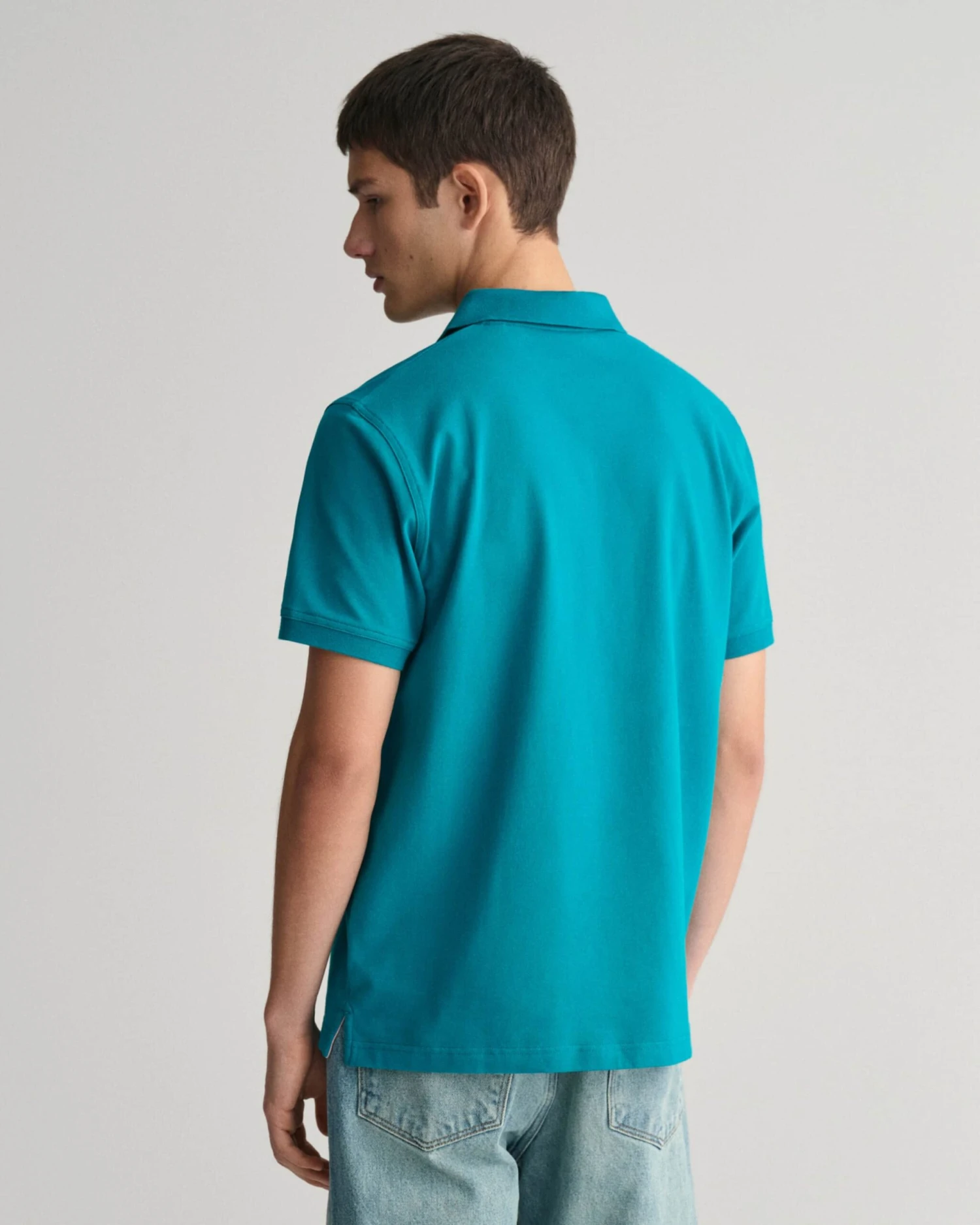 Made from cotton piqué with a touch of stretch, this polo shirt offers a regular fit. It features a flat knit collar, short sleeves, and a GANT logo embroidered on the chest in a contrasting color.