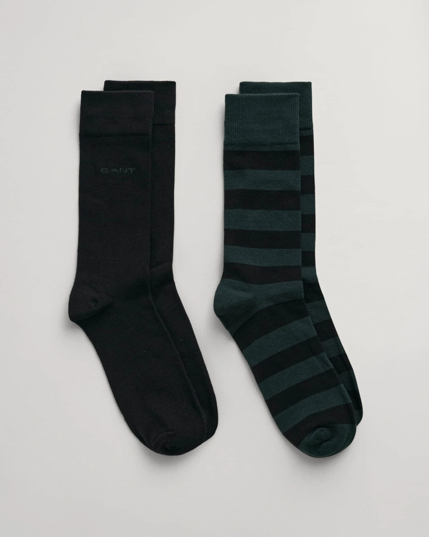 GANT 2-Pack Barstripe & Solid Socks Tartan Green
