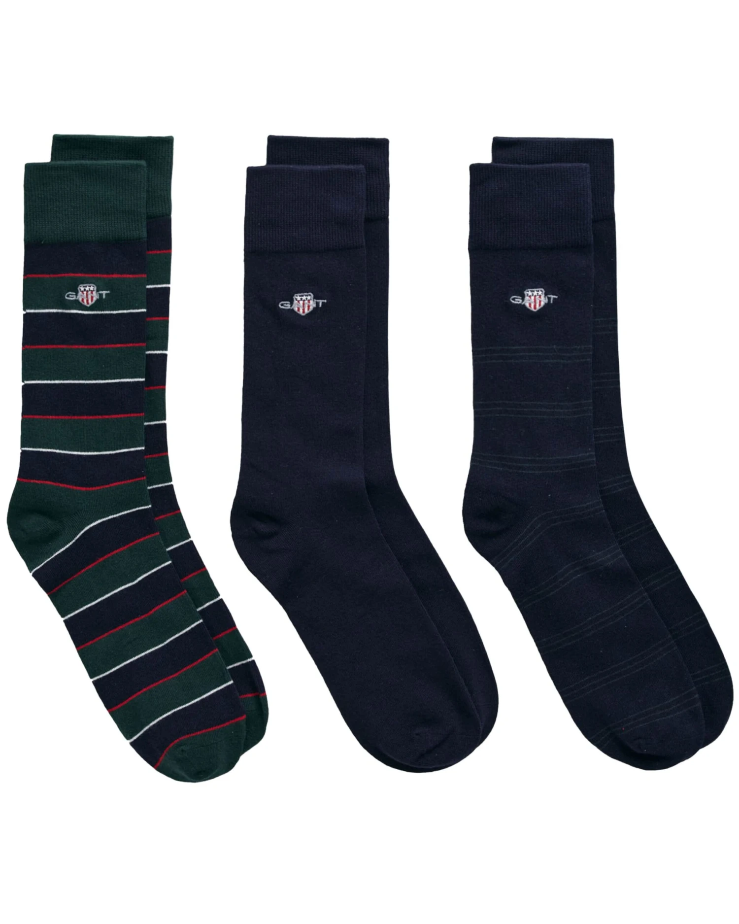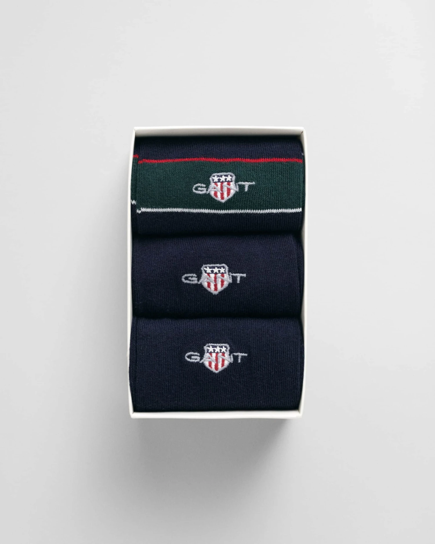 Made from a premium cotton blend, these socks feel luxuriously soft to wear. Presented in a gift box, this 3-pack includes one solid pair and two pairs patterned with the same stripes as seen on our preppy ties in this season’s collection. All socks are detailed with a GANT shield graphic embroidered at the ankle.