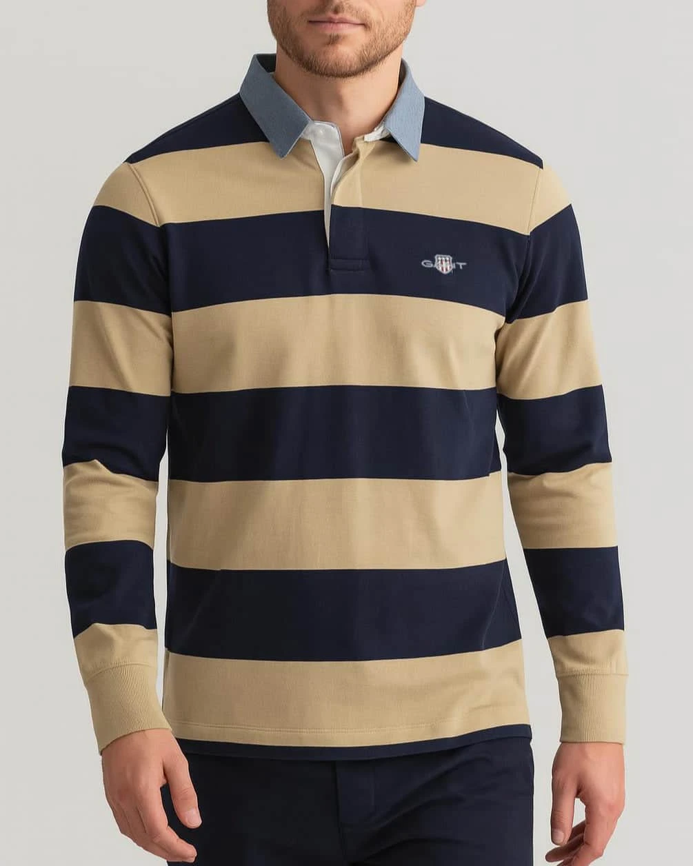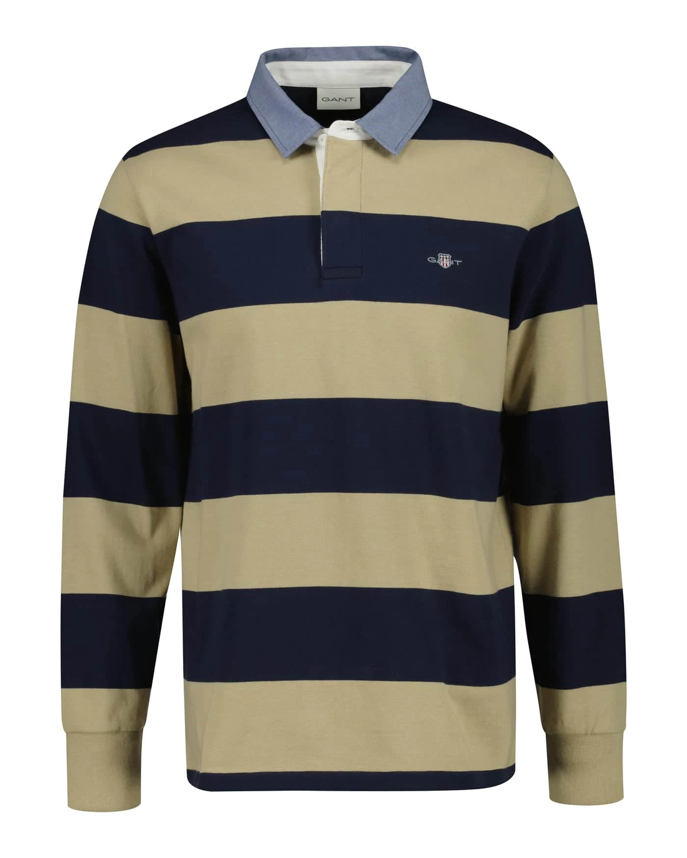 Featuring a small-scale GANT shield graphic embroidered at the chest, this striped rugger is crafted from 100% cotton and designed with a regular fit. Timeless, classic and versatile, the design is complete with a chambray collar and a classic three-button placket.