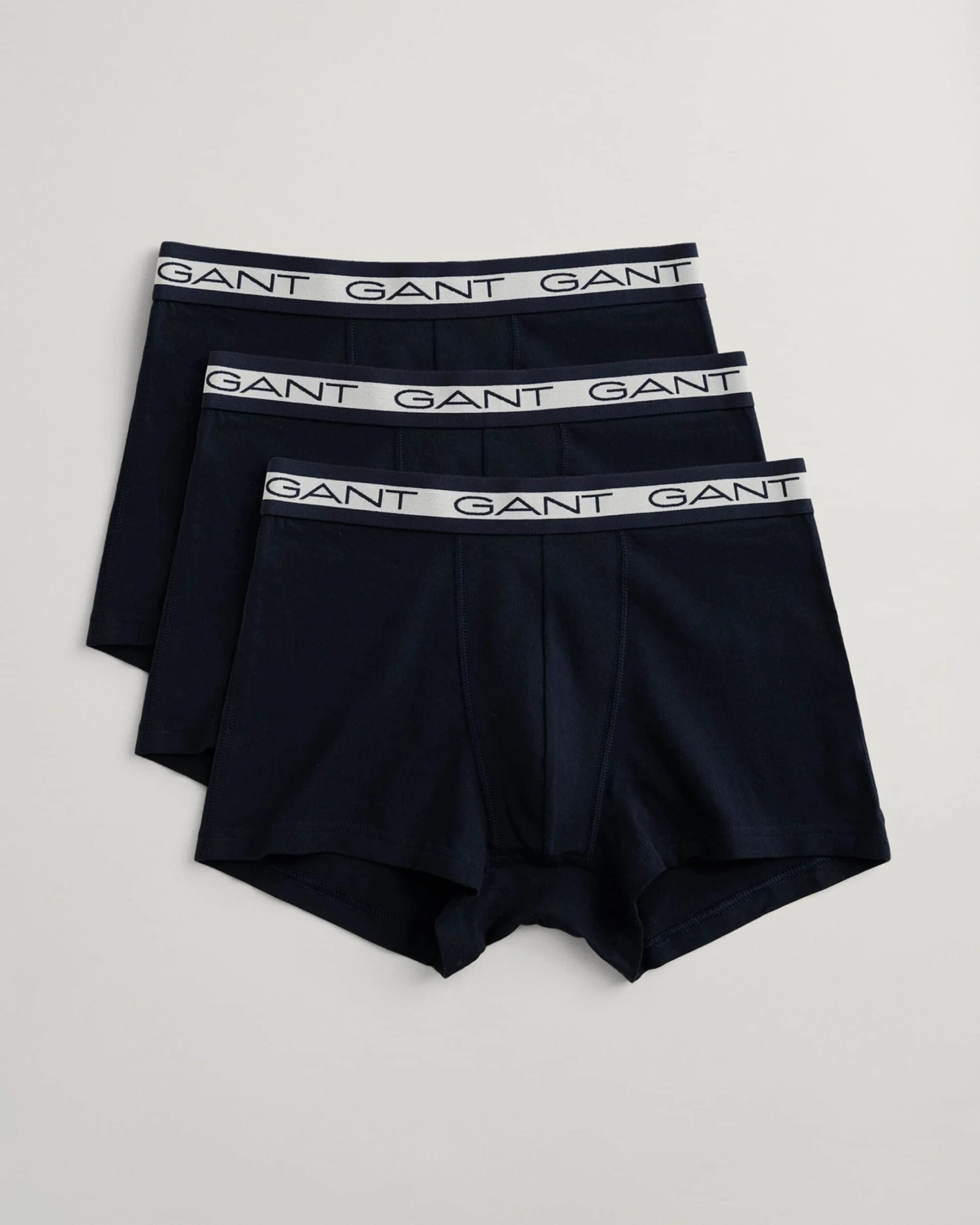Discover our essential trunks in a convenient three-pack, made from a lightweight cotton jersey blend with a touch of stretch for added comfort. These trunks boast a slim fit, short legs, and a standard waistline. Adorned with a jacquard-knitted elastic waistband embellished with our iconic GANT logo.