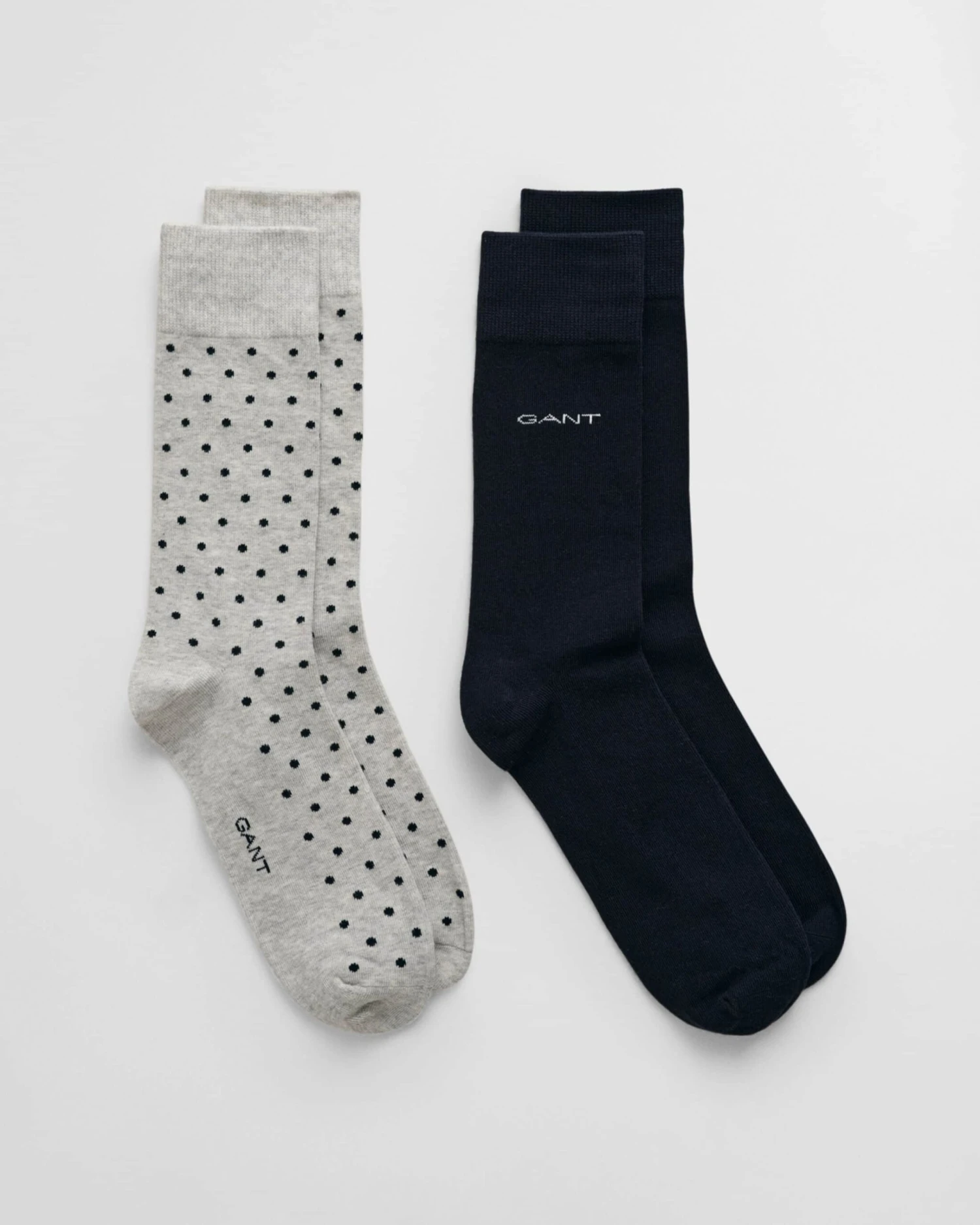 A great way to bring color and pattern to your outfits — these 2-pack socks feature a polka-dot design and a classic solid colorway. Made of combed cotton, they are designed with a double welt hem and a GANT intarsia logo at the ankle.