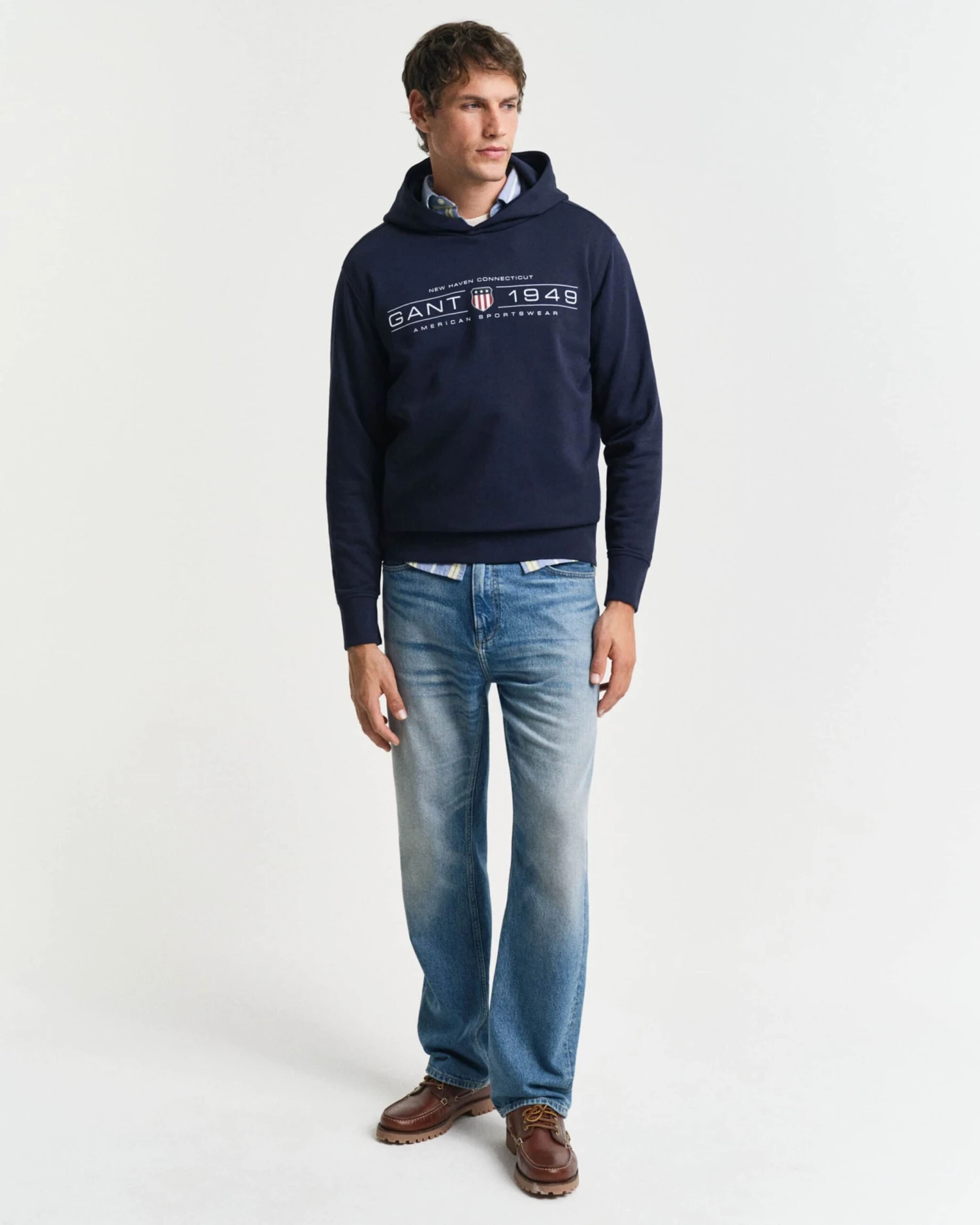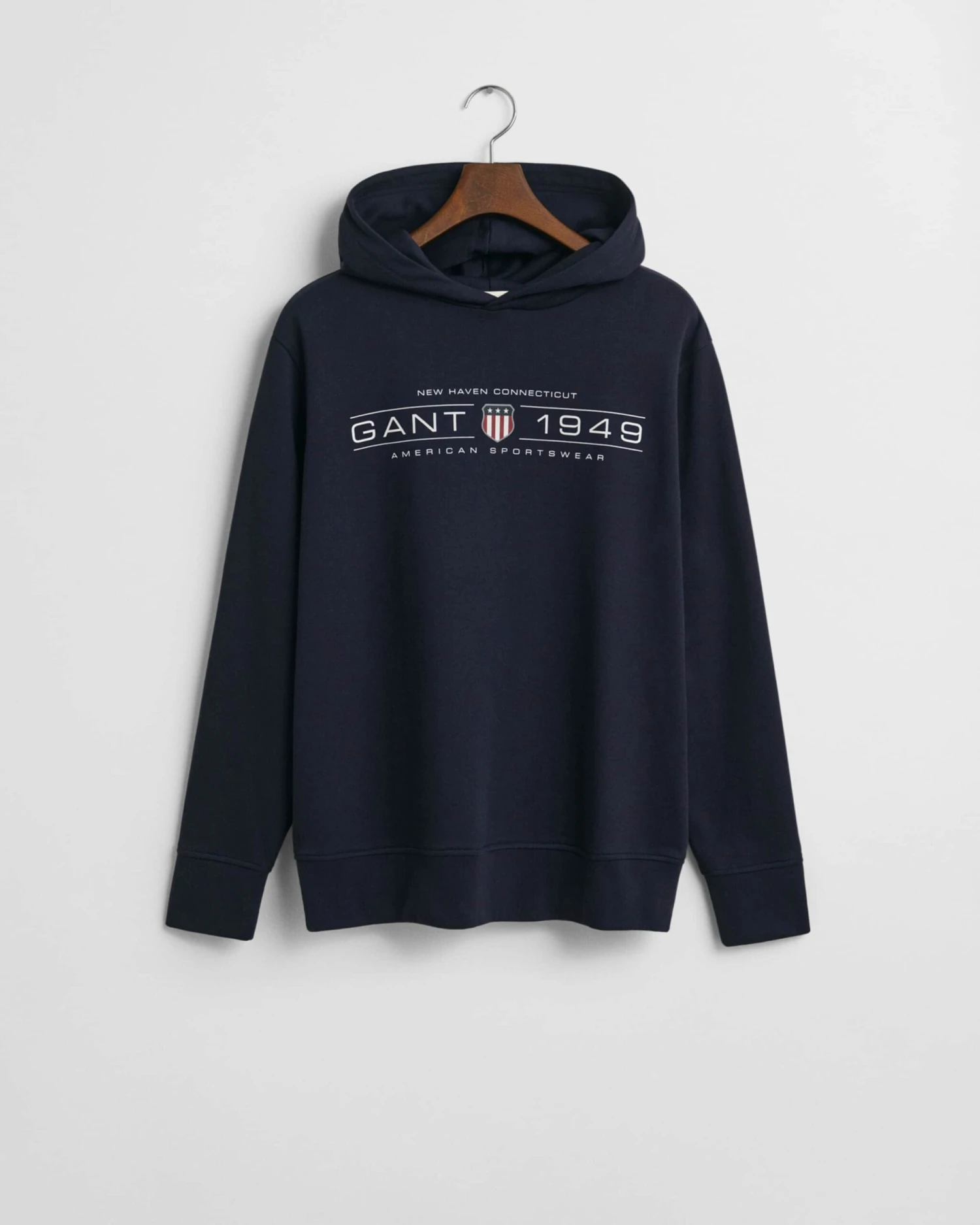 Crafted from a cotton-rich polyester blend, this casual hoodie has been designed for a regular fit. It is complete with rib endings and a seasonal GANT graphic printed at the chest.