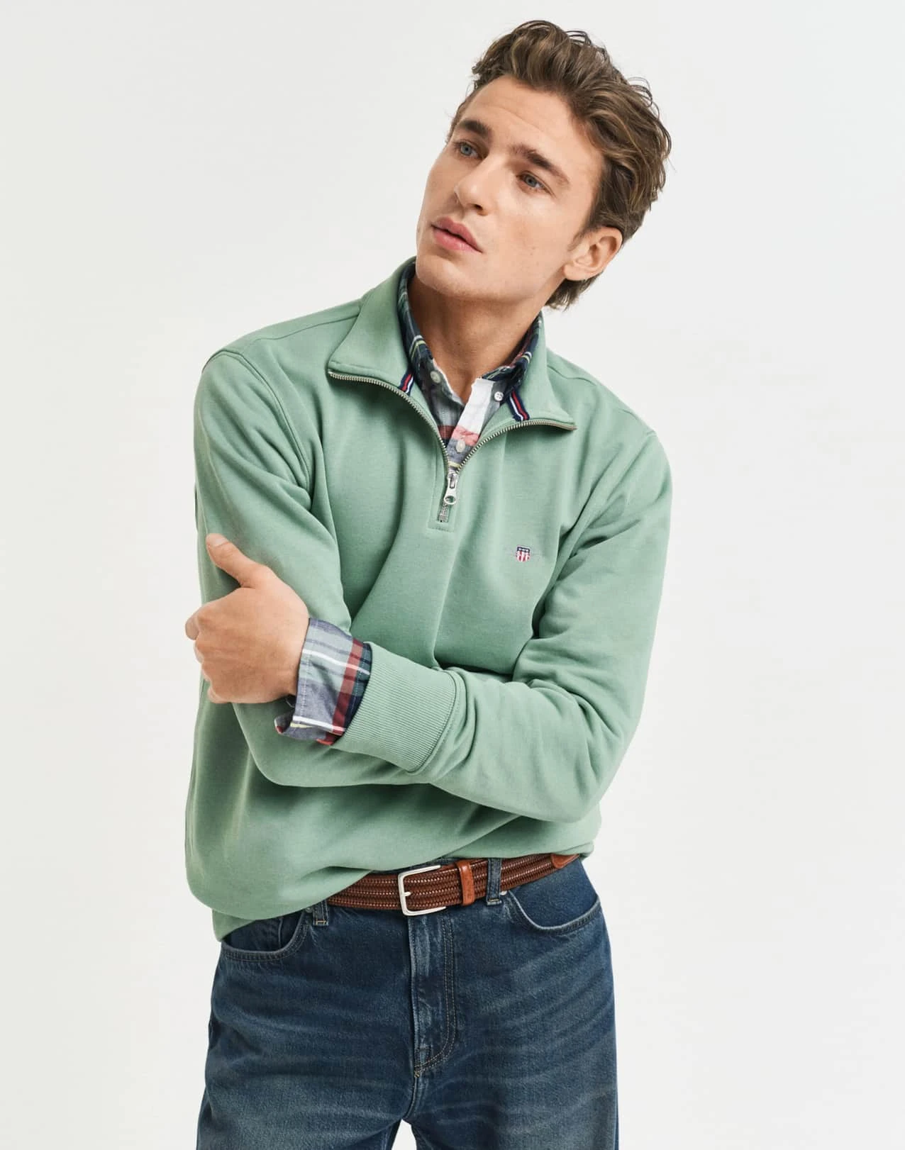 Featuring a small-scale shield graphic embroidered at the chest, this half-zip sweatshirt is detailed with soft ribbing at the hem and cuffs. Made from a rich cotton-polyester blend in a regular fit, this sweatshirt can be worn over tees and layered under jackets during the winter months.
