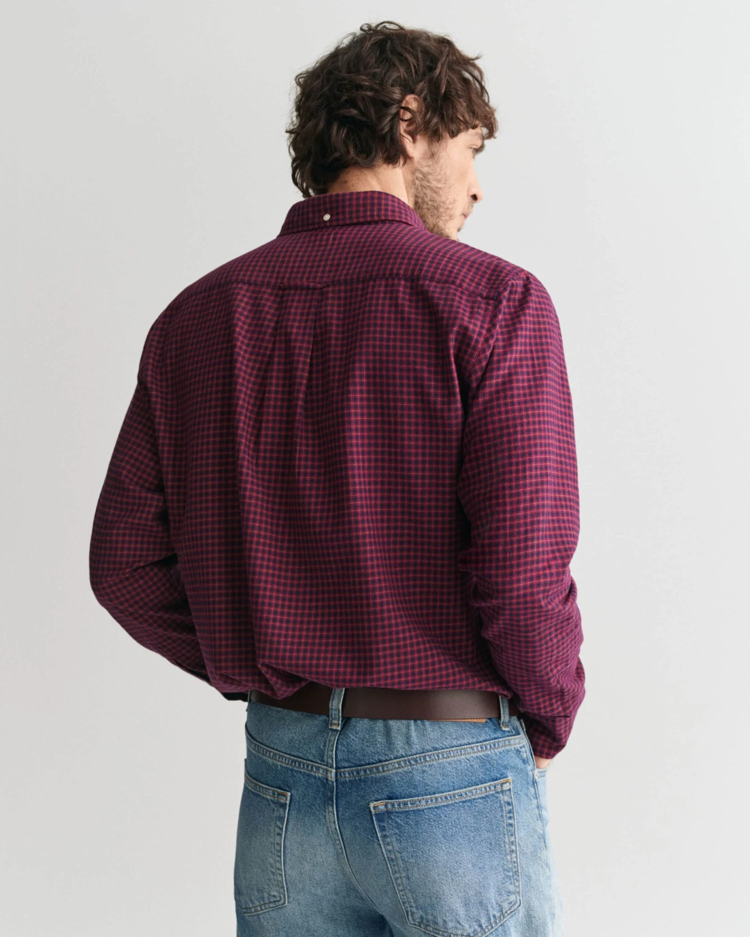 Crafted from cotton, this shirt is cut for a regular fit and features an all-over micro checked pattern. Designed with a lightweight twill flannel fabrication, the shirt is constructed with a classic button-down collar, adjustable cuffs and a curved hem. Detailed with recycled polyester buttons, the design is also embellished with a GANT shield graphic embroidered at the chest pocket and a box pleat with our signature locker loop at the back.