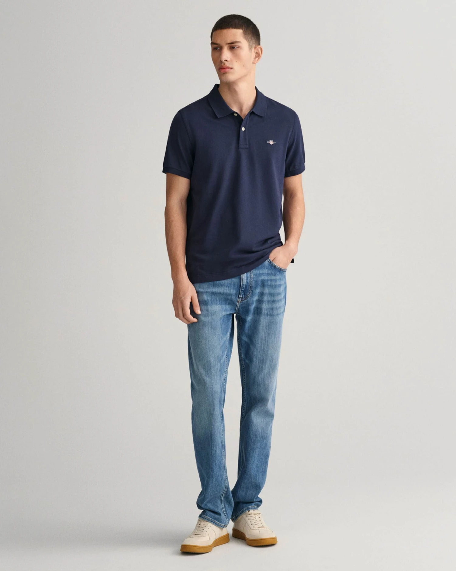GANT Mens Regular Fit Shield Piqué Polo Shirt Evening Blue