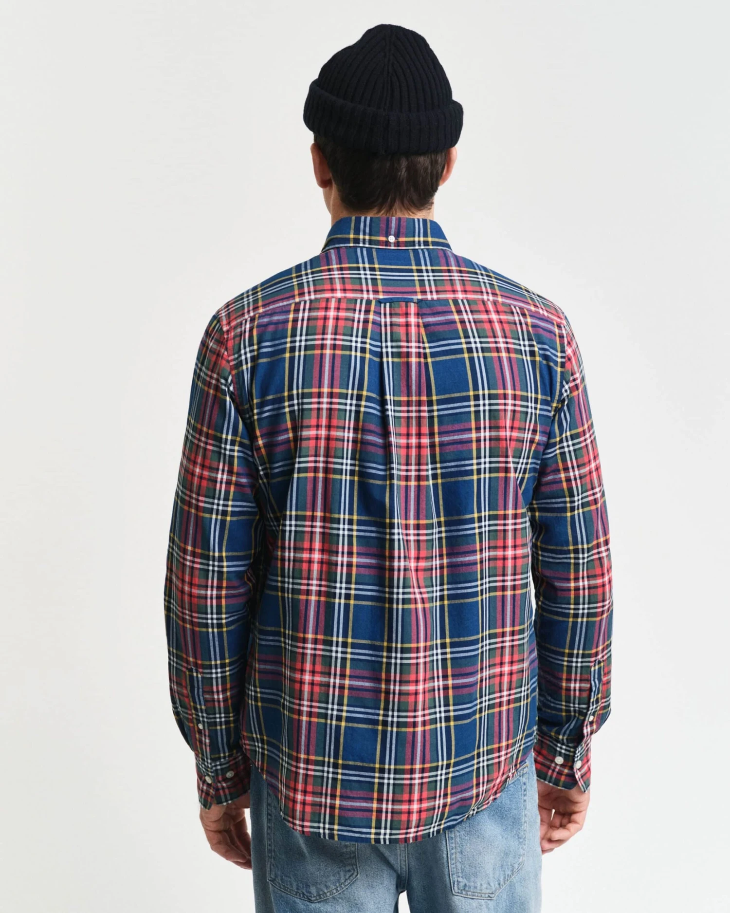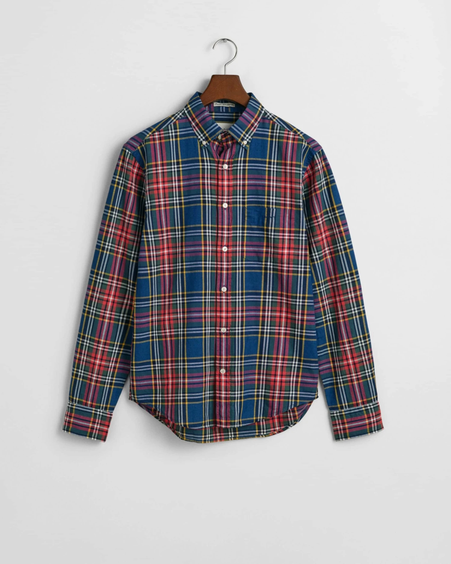 Made from a lightweight indigo fabrication, this shirt is cut for a regular, untucked fit and features an all-over yarn dyed check pattern with indigo yarns. Designed with a classic button-down collar, the shirt is crafted with adjustable cuffs, a curved hem, a box pleat and locker loop at the back and a GANT logo embroidered on the chest pocket.
