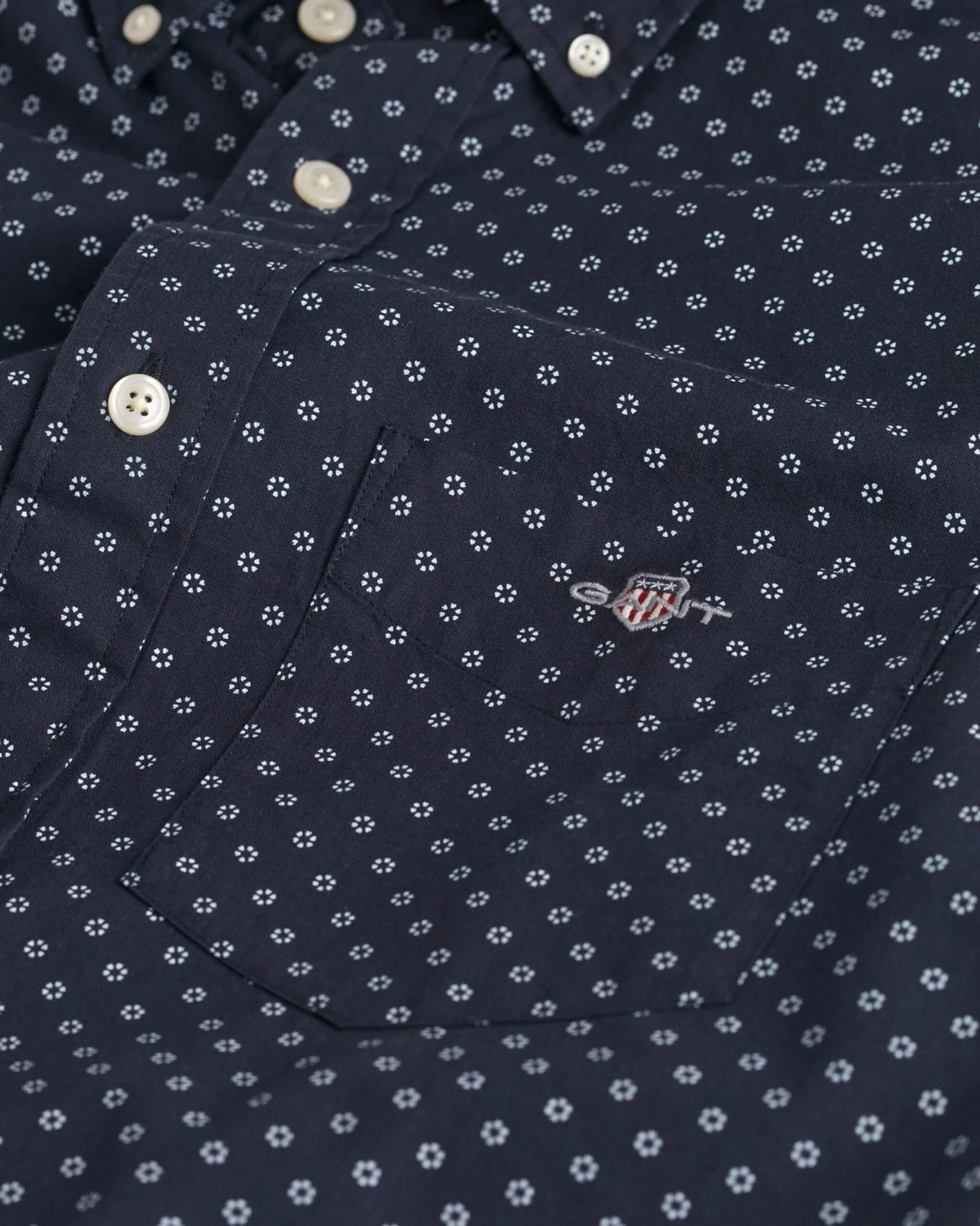 Crafted from 100% cotton, this long sleeved shirt is cut for a regular fit and features a stylish all-over micro print pattern. The design is constructed with a button-down collar, adjustable cuffs, a curved hem and a GANT shield graphic embroidered at the chest.