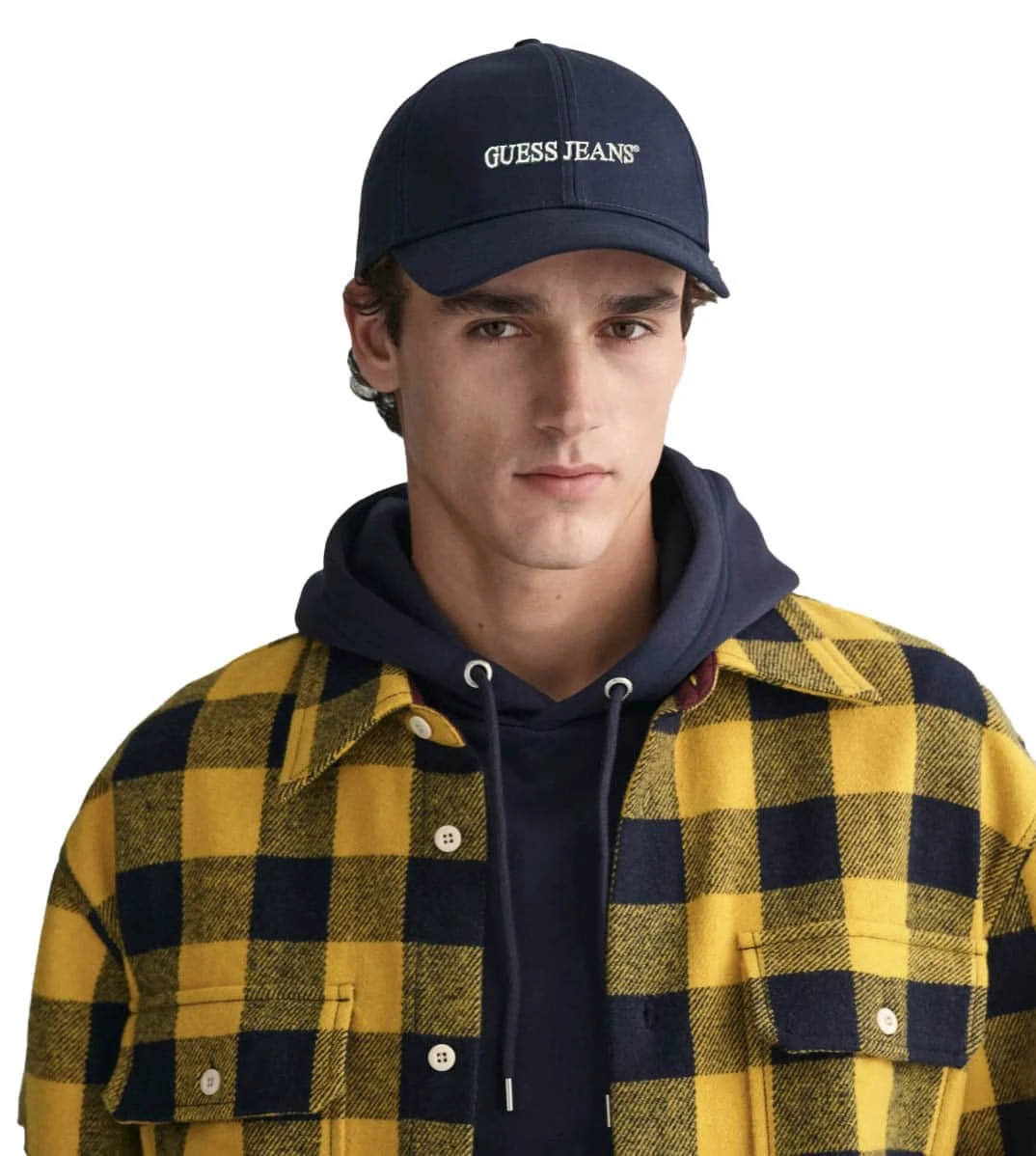 The Guess Jeans Men’s Embroidered Baseball Cap in Navy features a sleek, modern design perfect for everyday wear. The cap is crafted from high-quality fabric, ensuring durability and comfort. A prominent embroidered logo adds a stylish touch to the front, making a bold fashion statement.