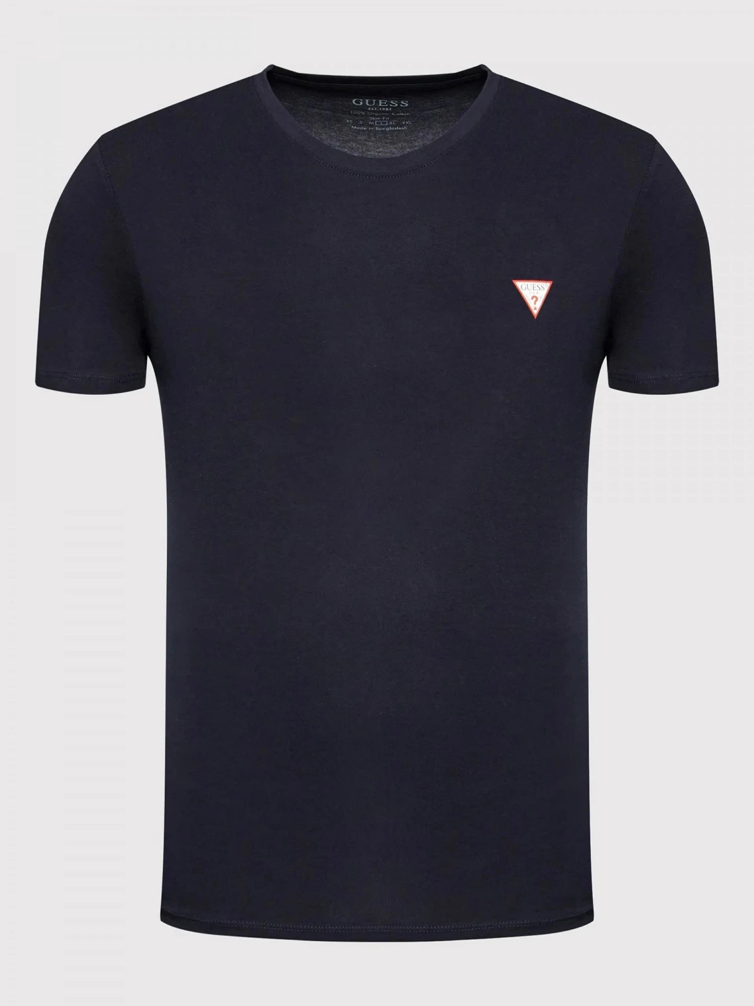 Elevate your casual wardrobe with the Guess Men’s T-Shirt Core Logo Basic Triangle Logo in Navy. Crafted from a premium organic cotton blend, this t-shirt not only keeps you stylish but also showcases your commitment to sustainability.