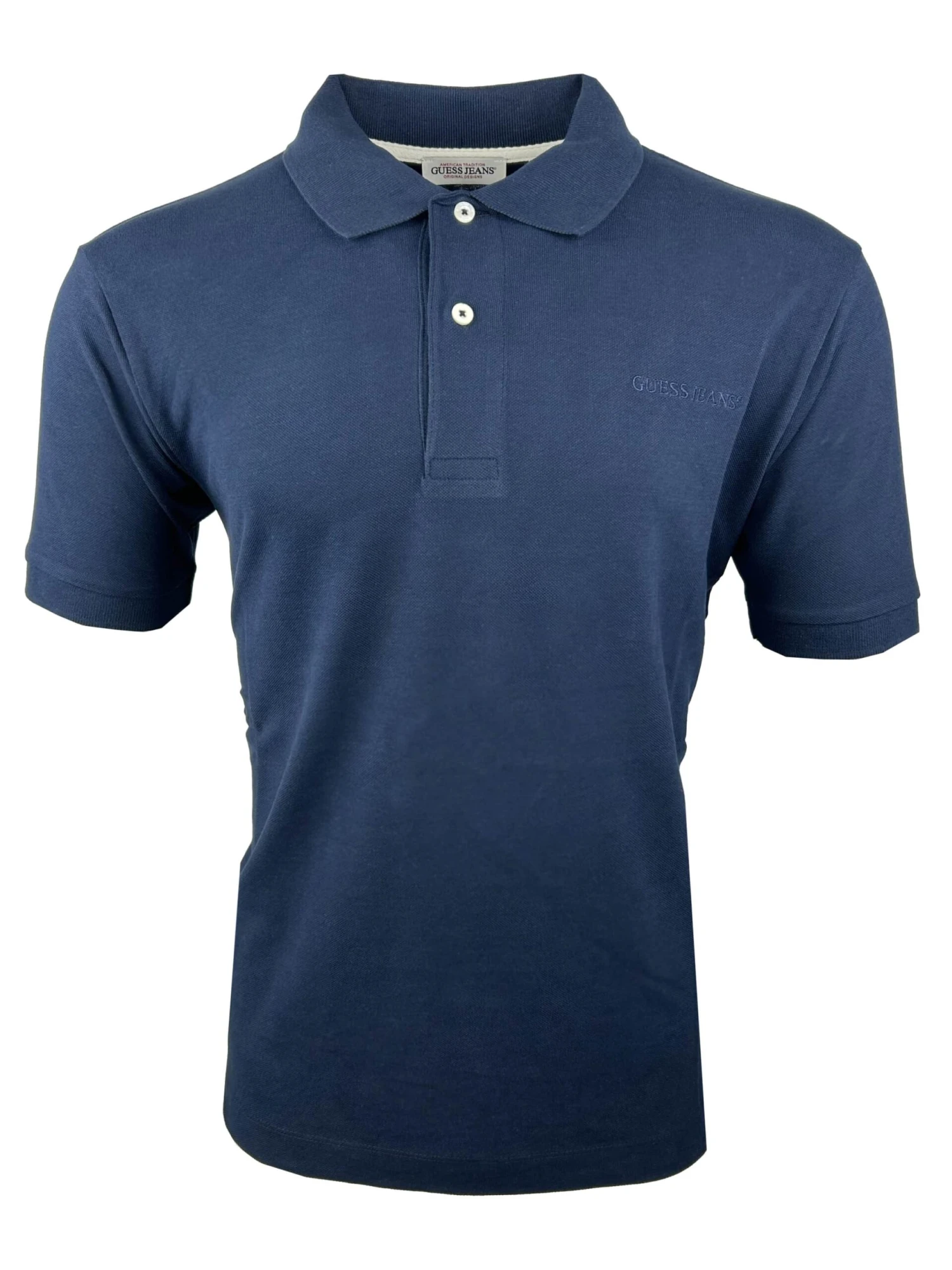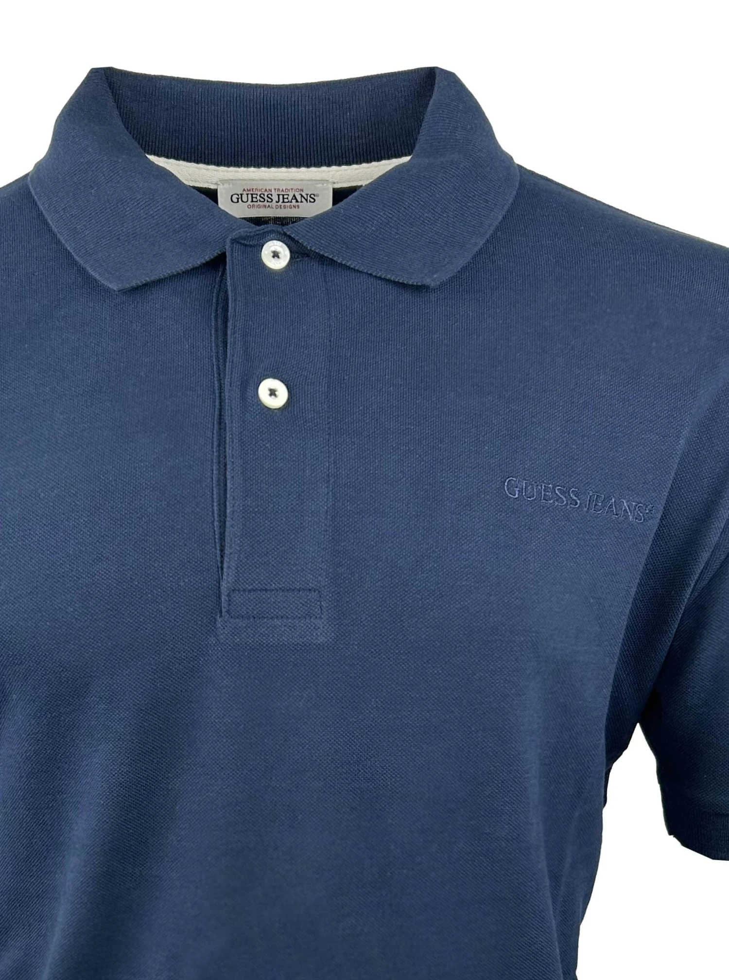 Guess Mens Embroidered Logo Polo Shirt Daring Ocean Navy
