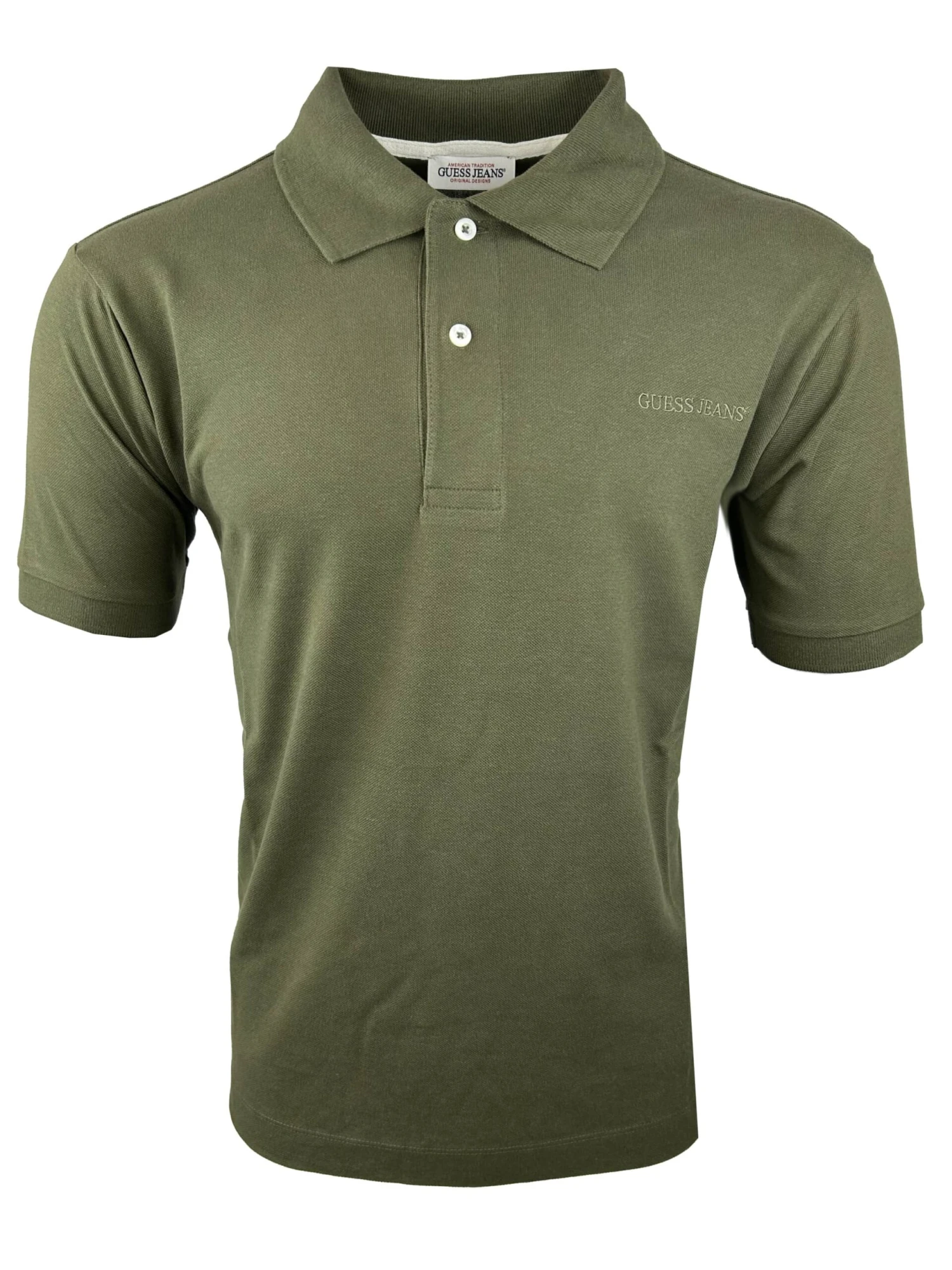 Guess Mens Embroidered Logo Polo Shirt Olive Light Green