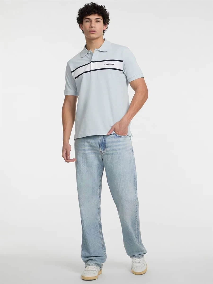 Upgrade your menswear collection with the Guess Jeans Logo Embroidery Polo in light blue. This stylish men’s polo shirt offers a classic fit with signature branding. Perfect for casual and smart outfits. Piquet polo in a regular fit