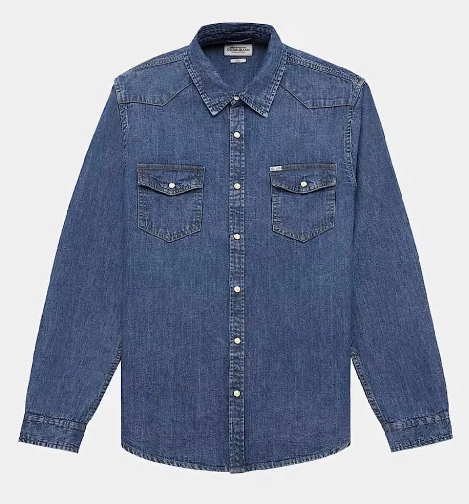 Available at Kelvin Graham Menswear, our slim-fit denim long sleeve shirt is perfect for both casual wear and making a statement. Crafted with our signature GUESS JEANS denim and featuring GUESS AIRWASH™ technology, this shirt combines style and comfort.