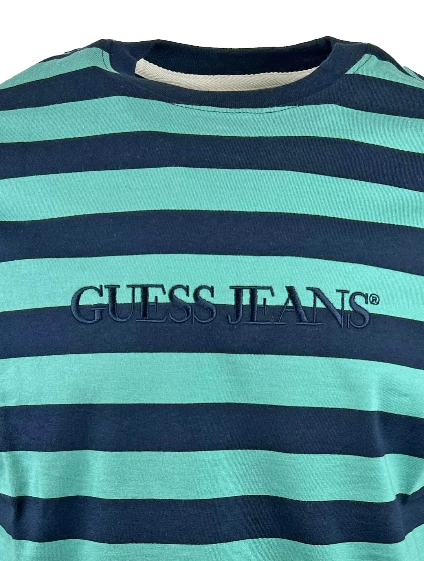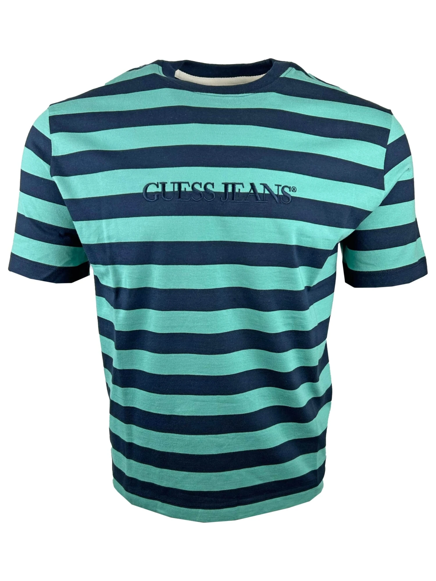 Guess Mens SS Crew Neck Striped T-Shirt Green/Navy