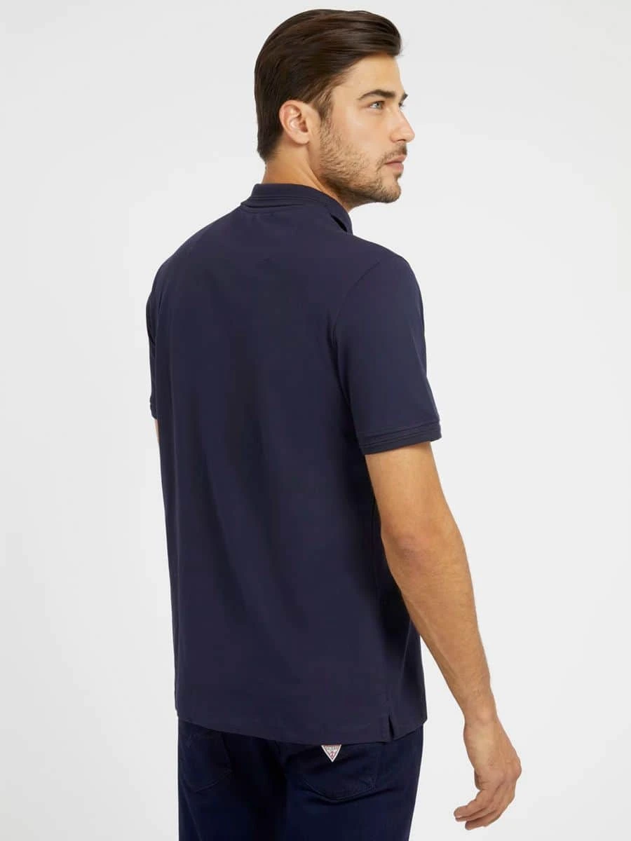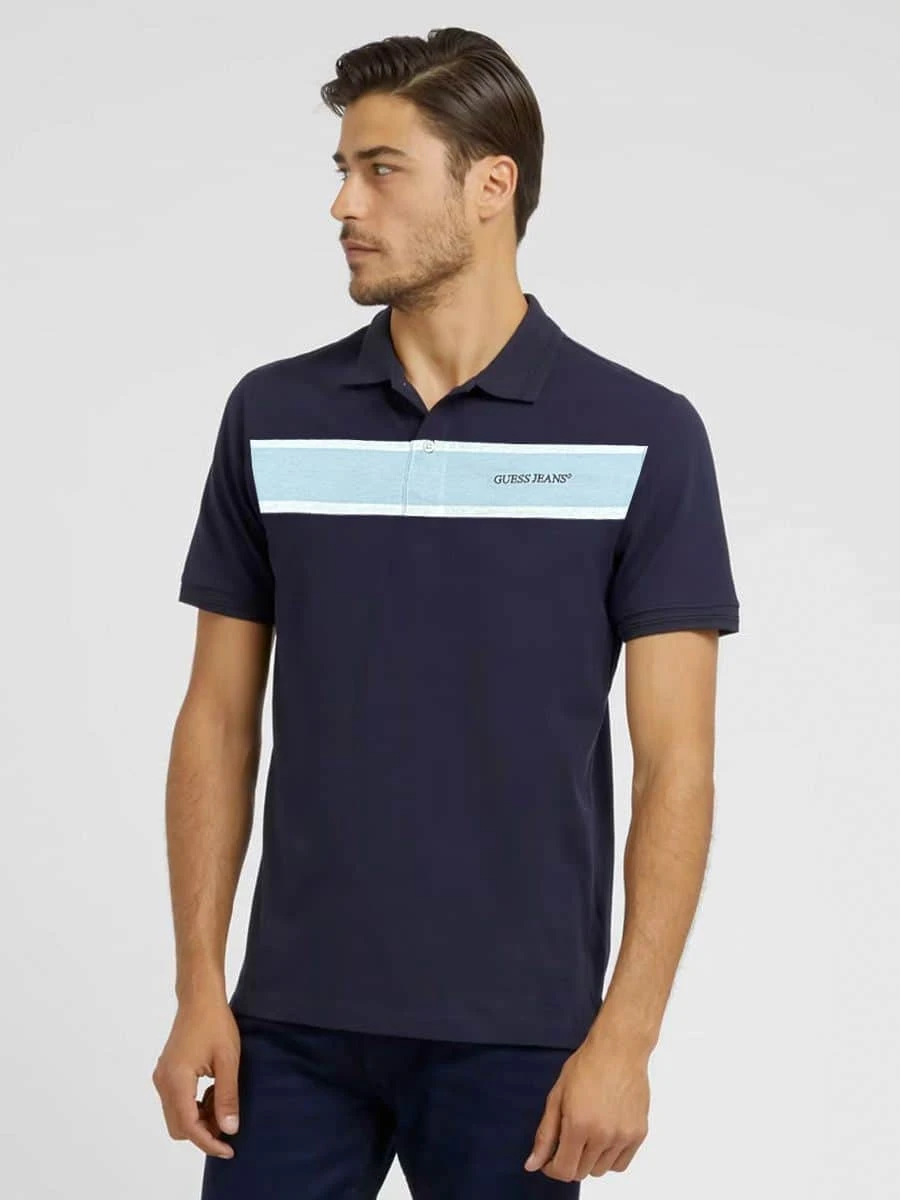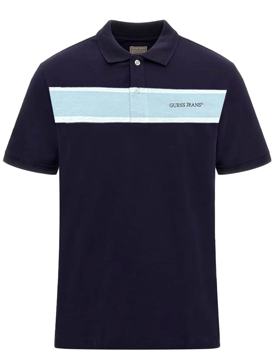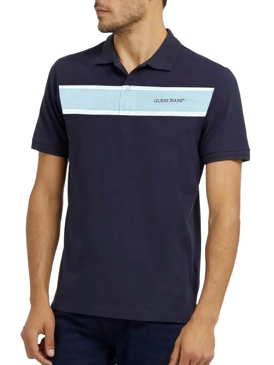 Achieve a sophisticated look with the Guess Classic Polo Shirt for men. This short sleeve polo shirt features a solid color with a light blue/white horizontal stripe, making it suitable for various occasions. The iconic Guess logo on the front chest adds a trendy element to your outfit. With a classic polo collar, regular fit, and button closure, it combines comfort and a smart appearance, making it a versatile choice for your daily wear.
