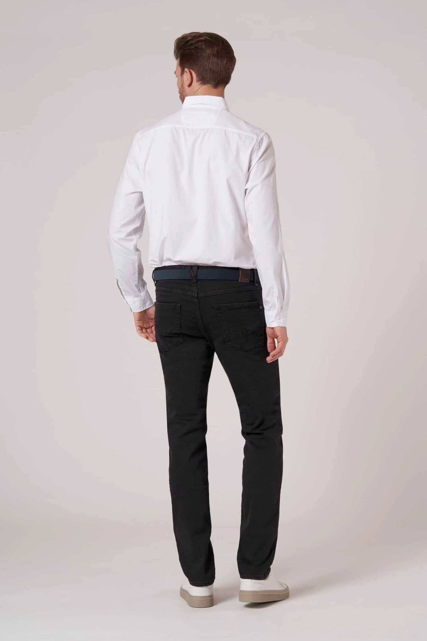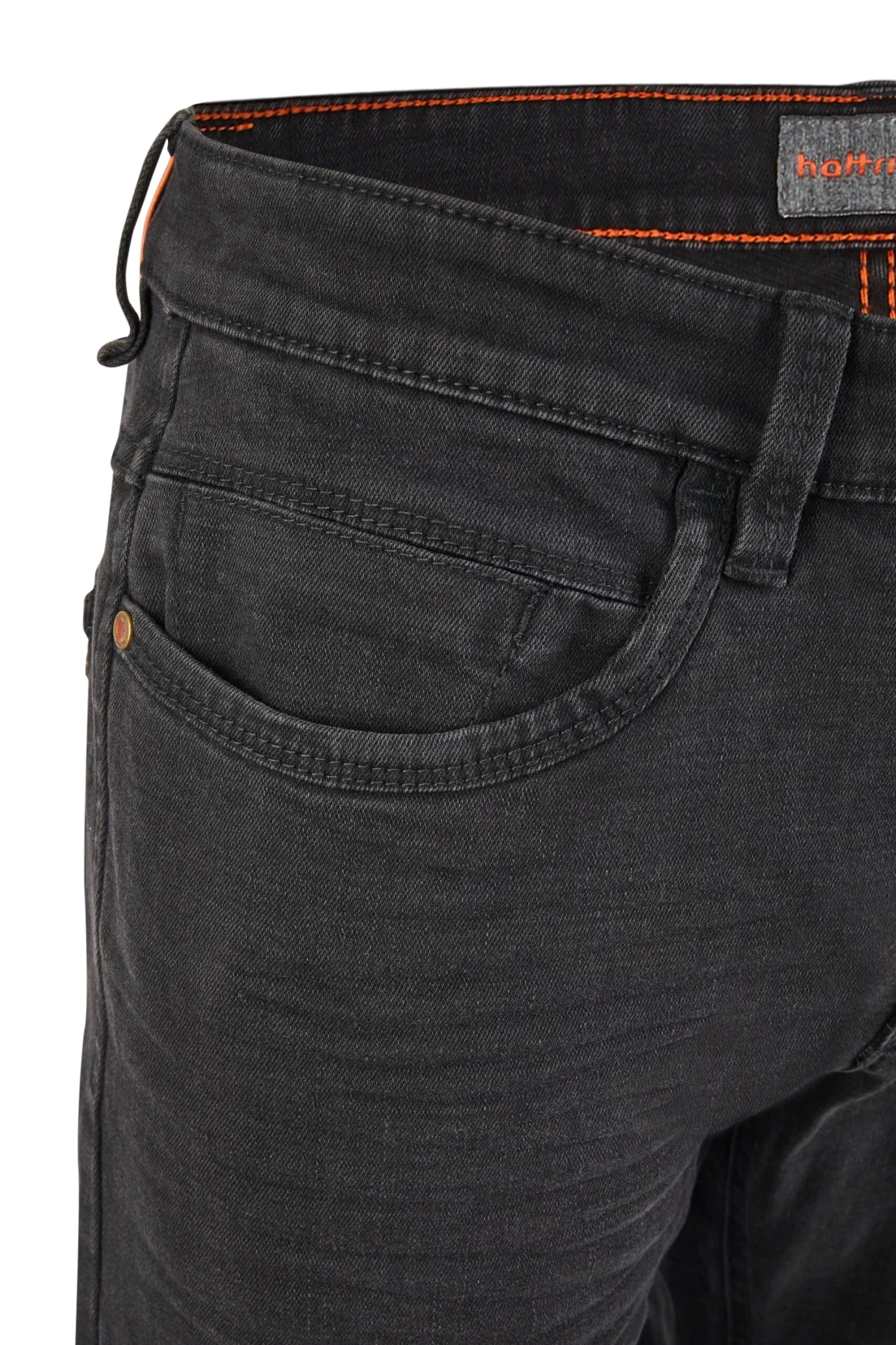 Hattric jeans are made with 5 pockets and have a comfortable, soft feel. They are also colorfast, meaning the color will not fade even after multiple washes. The Hunter model features a slim leg and normal rise. The fabric has a high stretch quality for added comfort. The two curved front pockets, coin pocket, and two patch back pockets make them practical for everyday wear. These jeans are also hold their shape well and are a very comfortable trouser to wear.