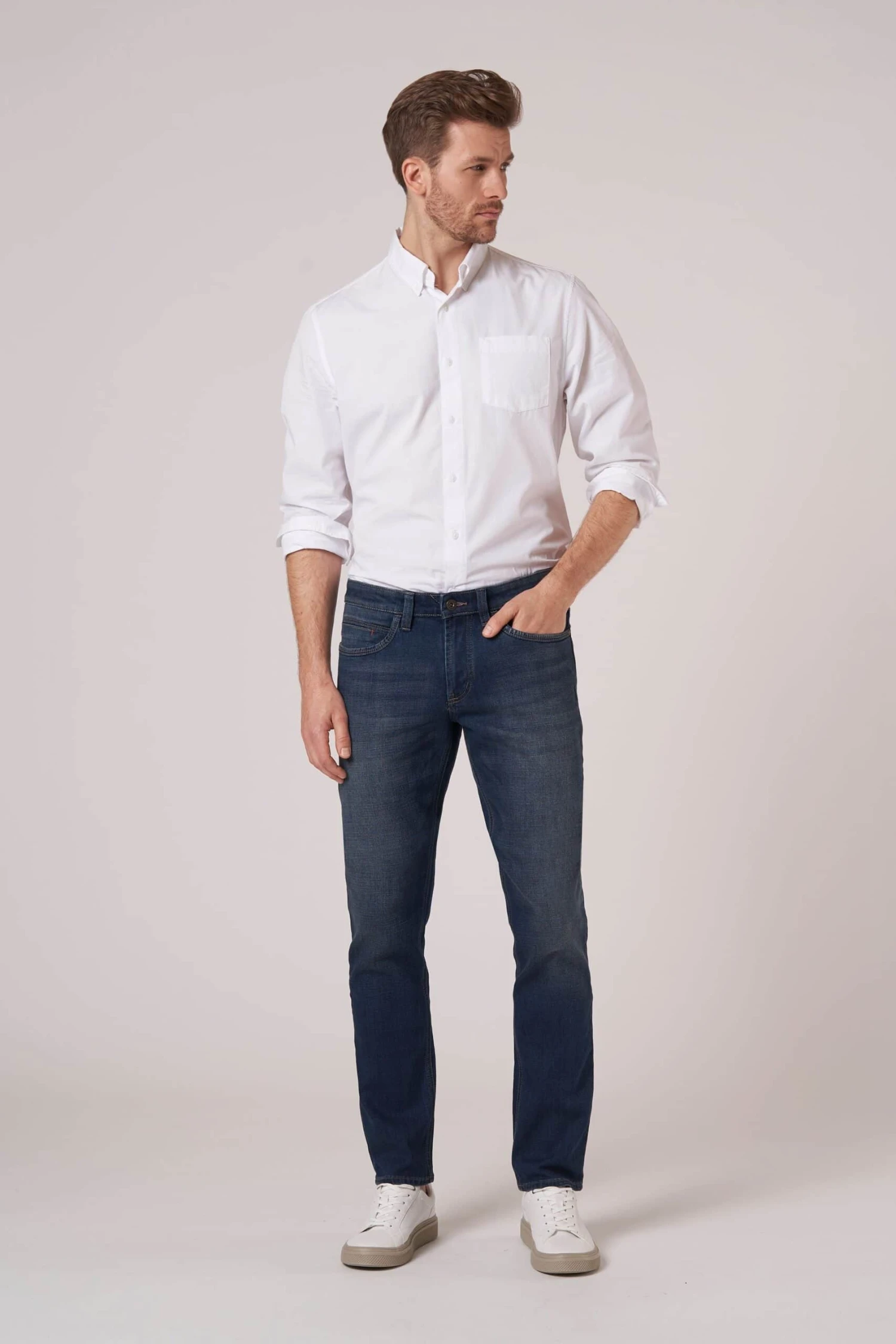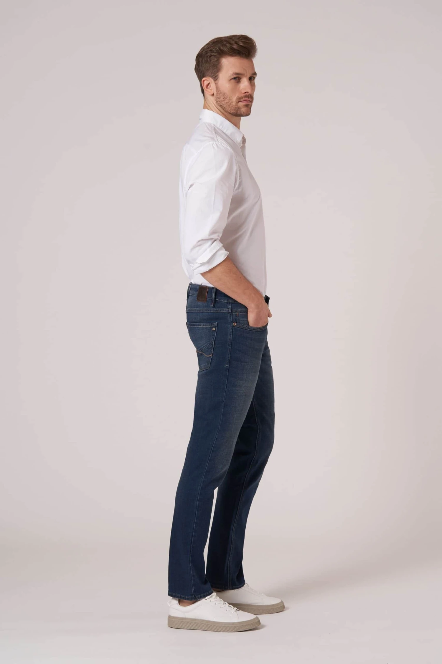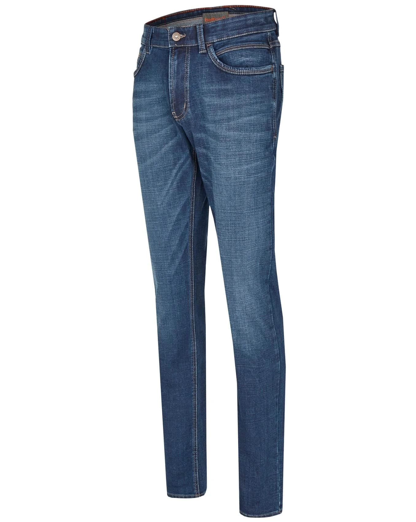 Hattric jeans are made with 5 pockets and have a comfortable, soft feel. They are also colorfast, meaning the color will not fade even after multiple washes. The Hunter model features a slim leg and normal rise. The fabric has a high stretch quality for added comfort. The two curved front pockets, coin pocket, and two patch back pockets make them practical for everyday wear. These jeans are also hold their shape well and are a very comfortable trouser to wear.