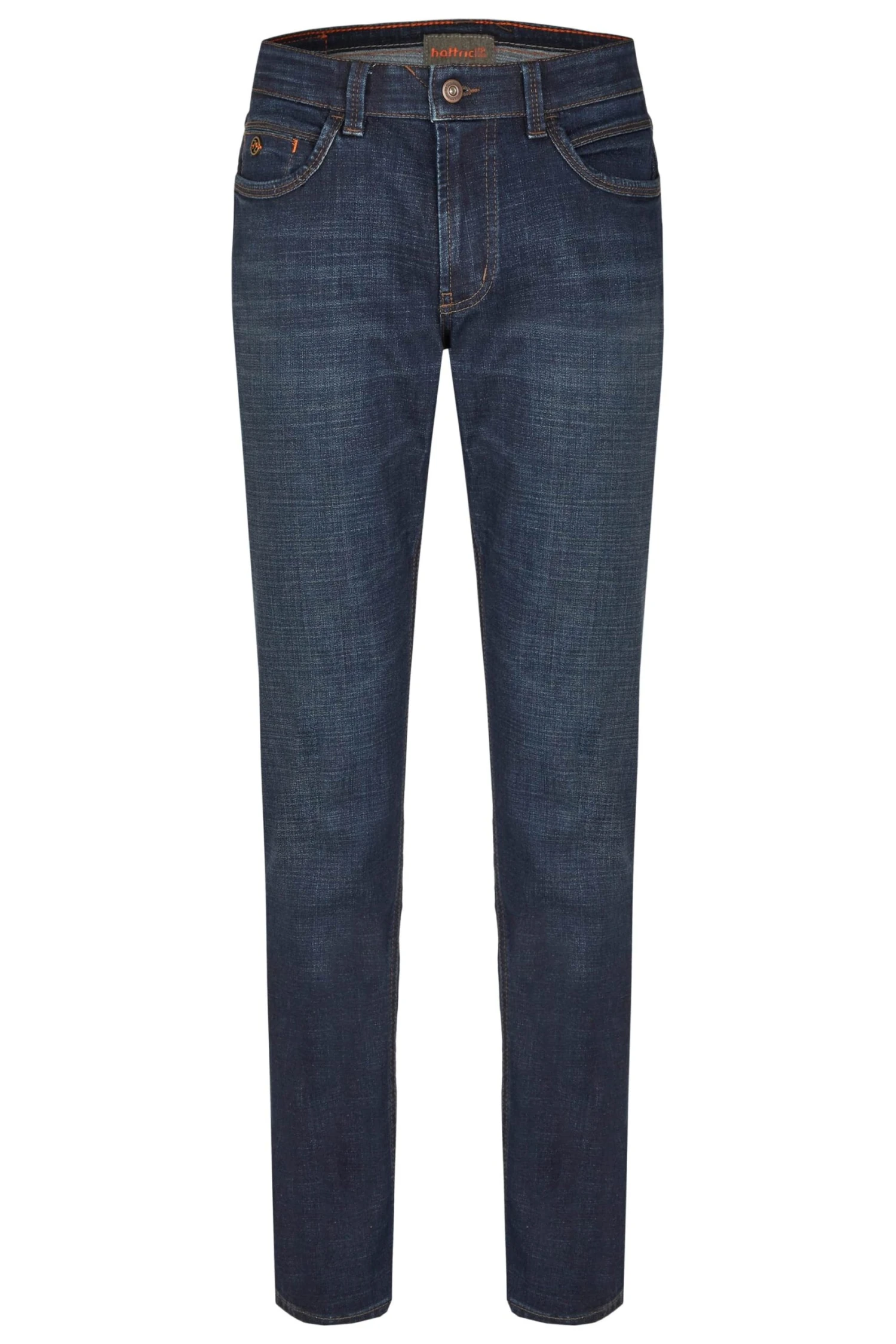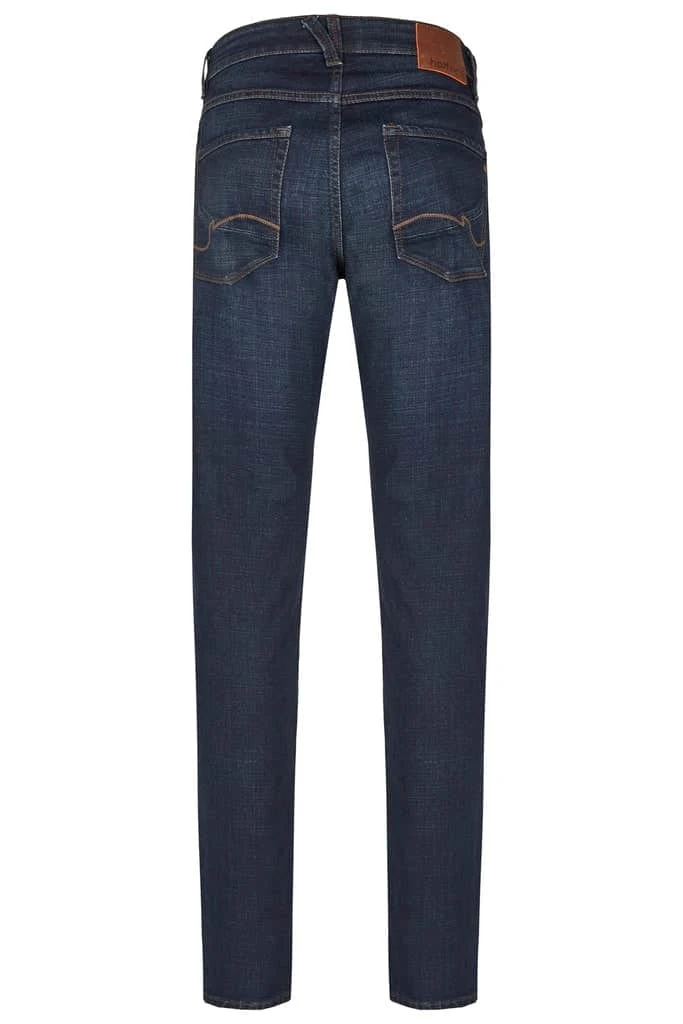 The hattric Harris Repreve jeans made from the innovative Repreve® fabric are a sustainably produced version of the classic 5-pocket denim men’s jeans. The material mix of 70% cotton, 29% Repreve polyester and 1% elastane not only makes you look good, but also protects the environment. The modern hattric jeans in the Harris cut are characterized by the comfortable, yet form-fitting foot width of 36cm with slim legs. In addition to color accents in neon green embroidery, the men’s jeans are complemented by a subtle hattric leather patch and a high-quality zipper.