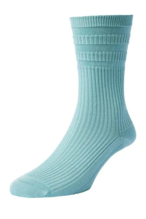 HJ Hall Soft Top Cotton Socks 1 Pair HJ91 Duck Egg Blue