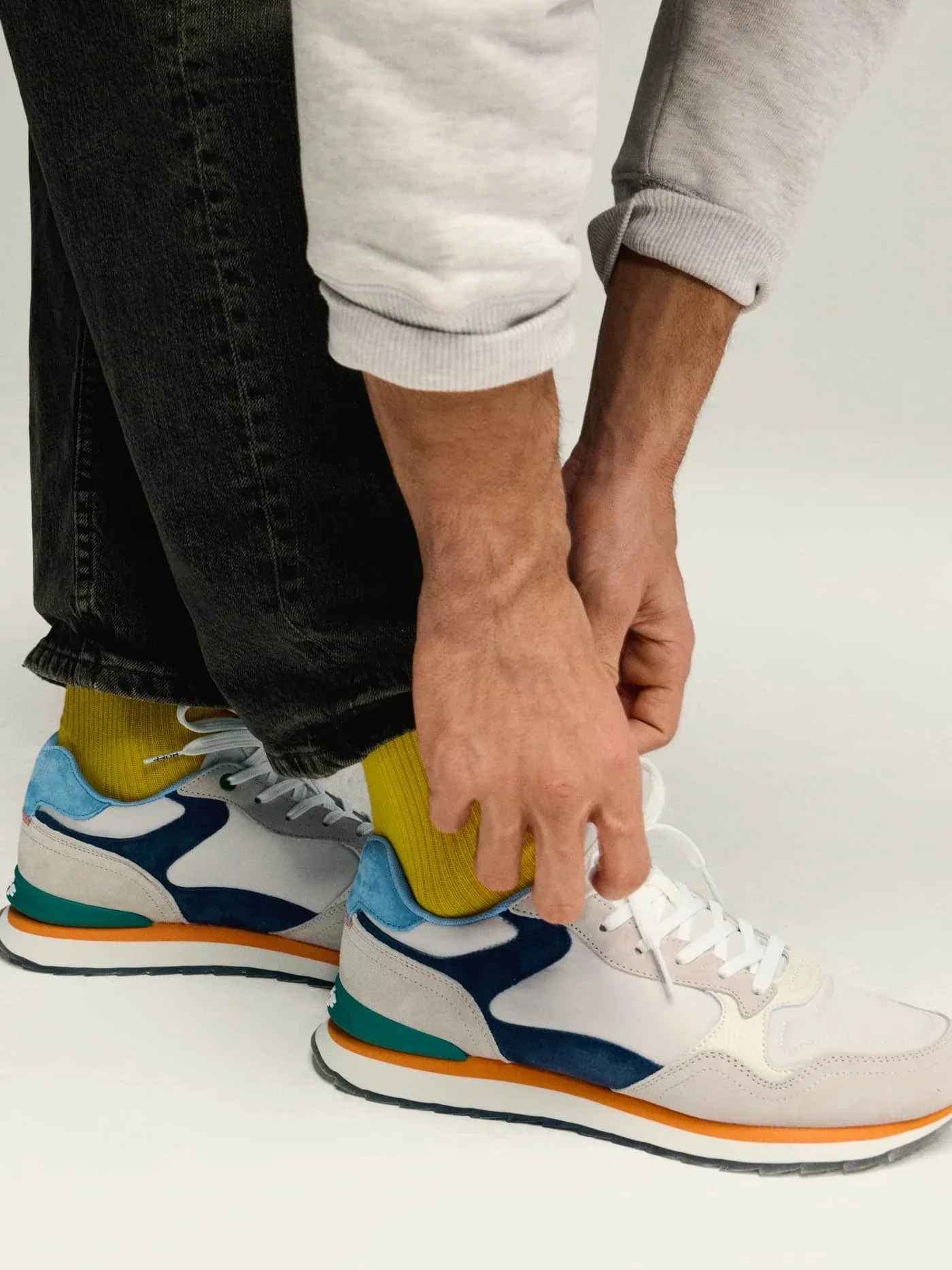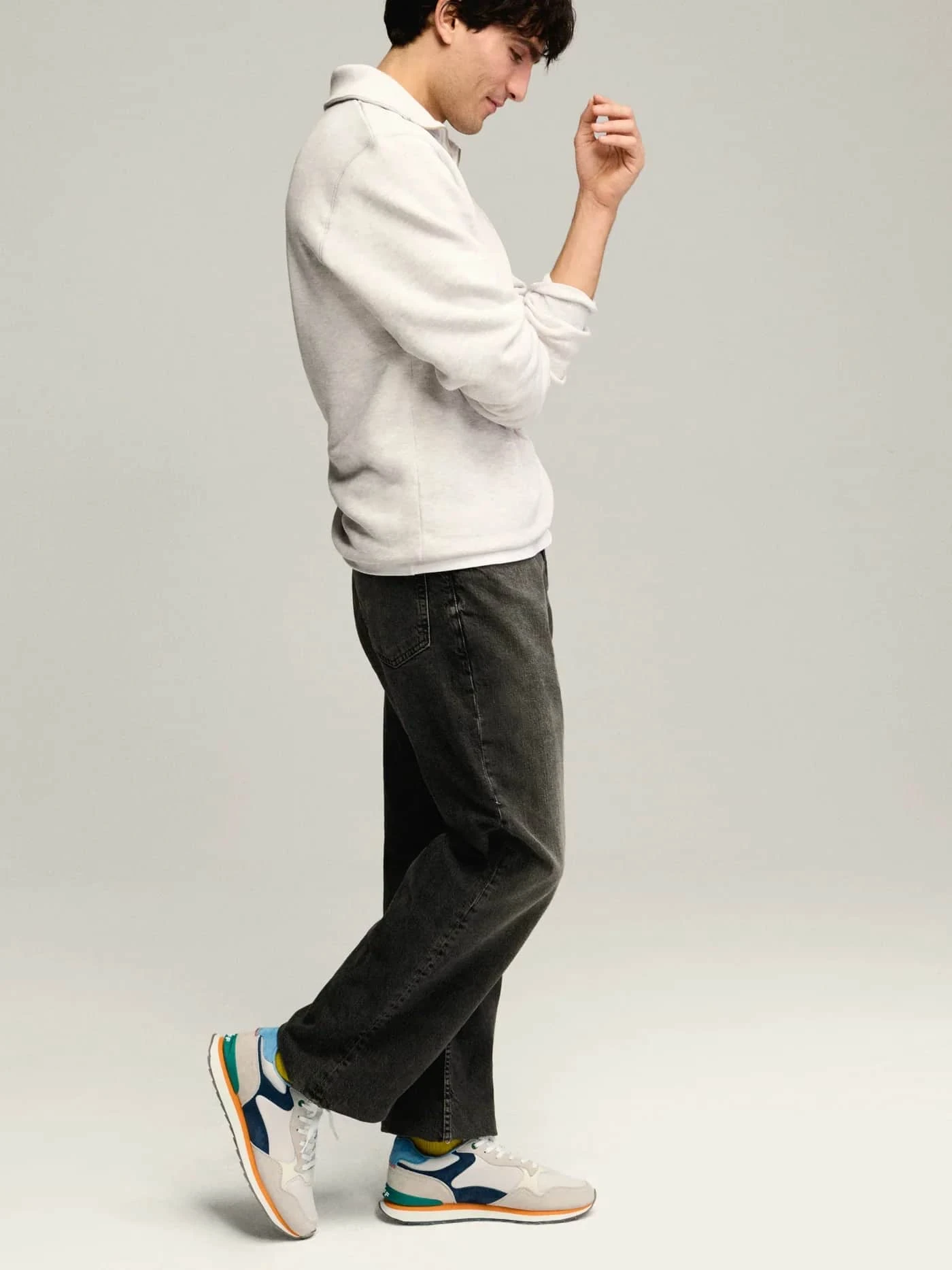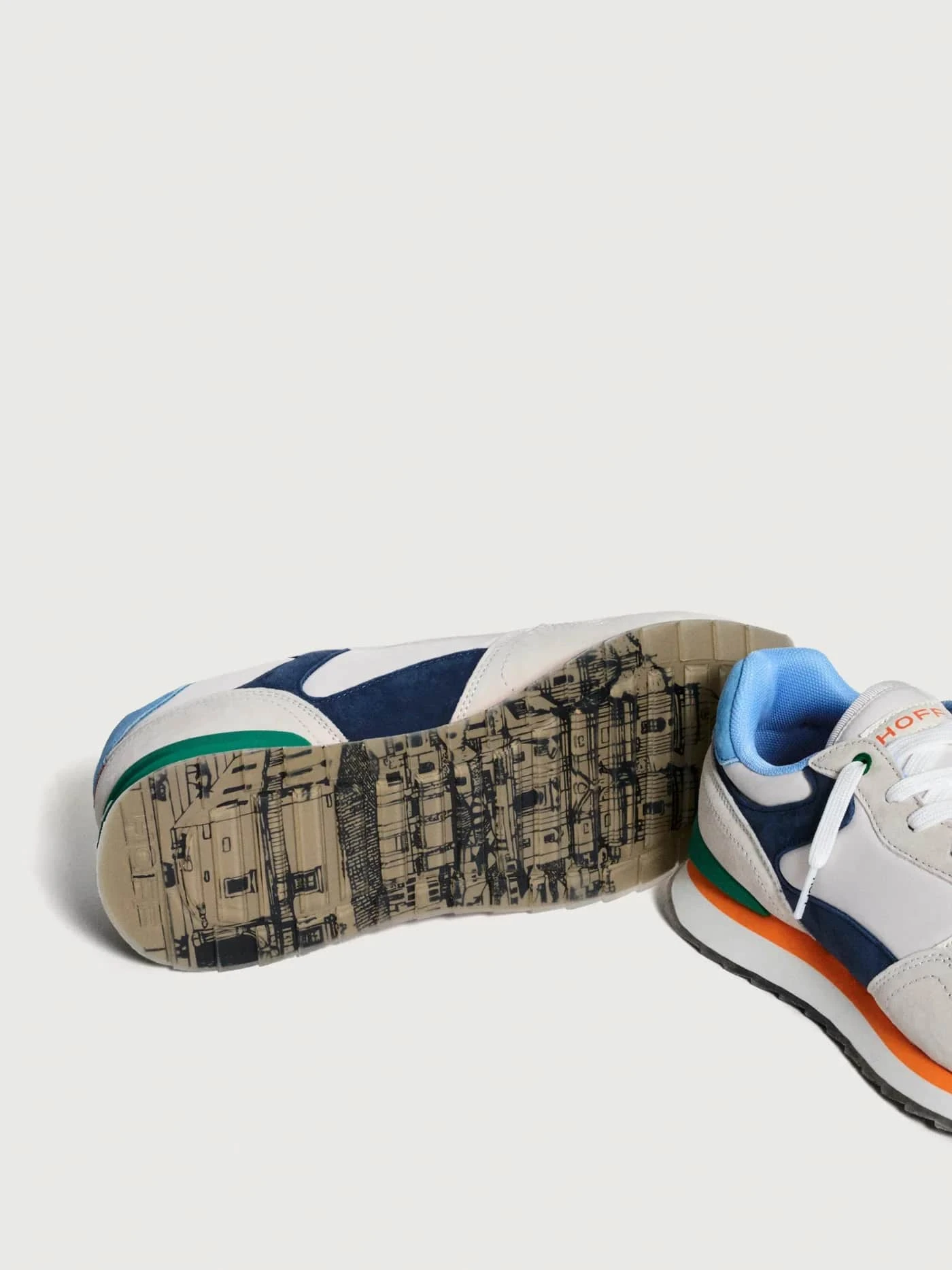 Retro-style sneaker in a combination of colors and materials. Logo detail on the back. Printed sole. Lace-up closure.
