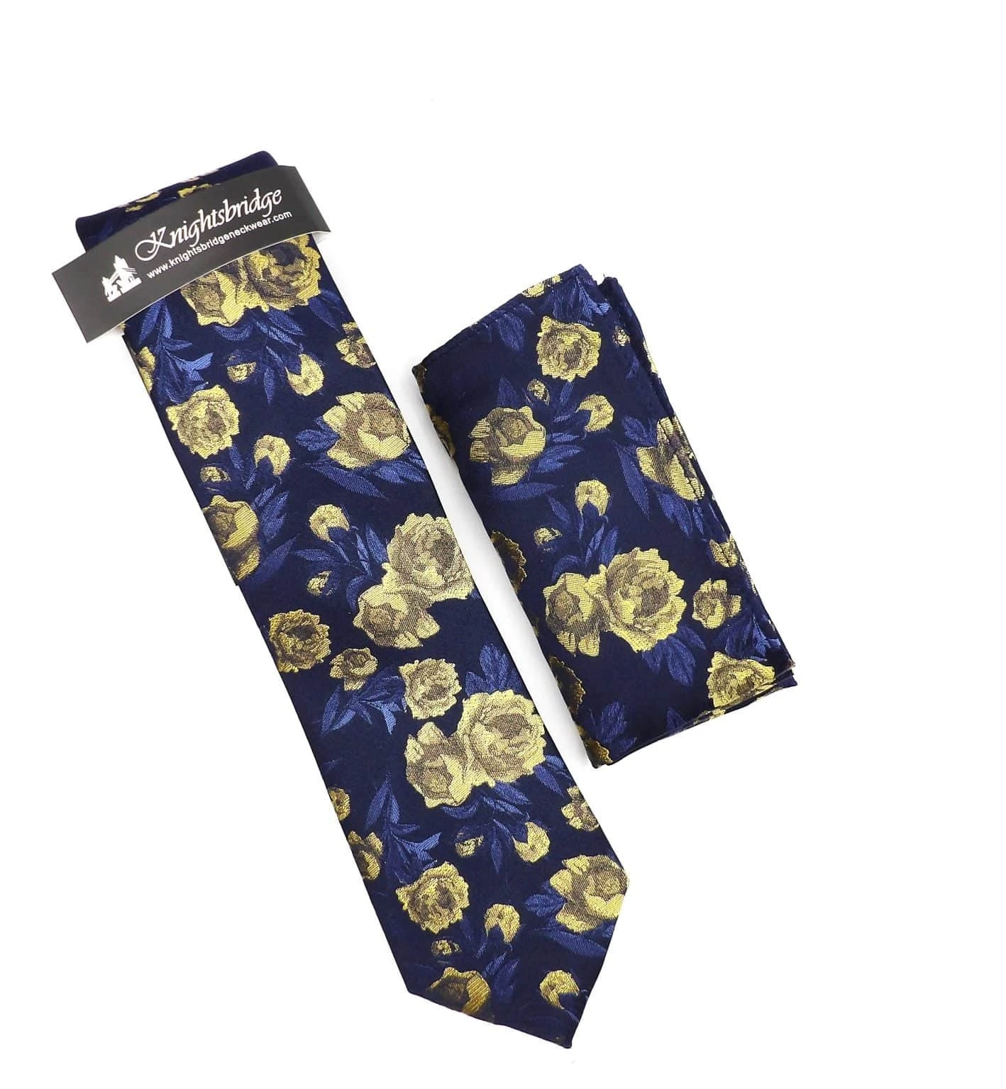 Knightbridge Tie & Pocket Square Set Yellow/Navy Floral