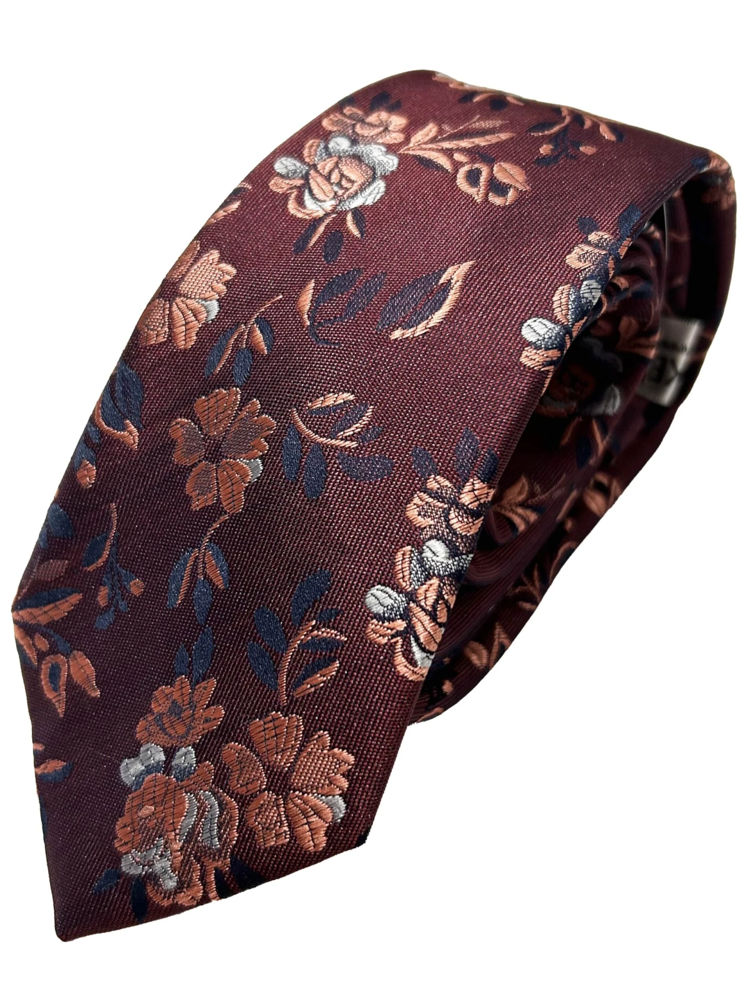 Knightsbridge Neckwear Floral Burgundy/Orange/Navy