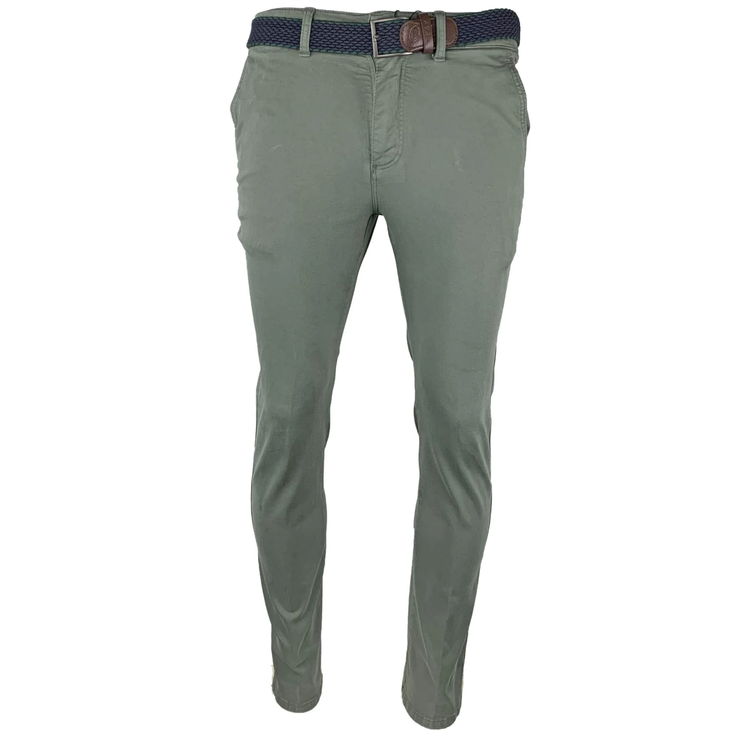 LCDN By Nalo Men’s Chinos Bruno Stretch Trousers With Belt Olive Green