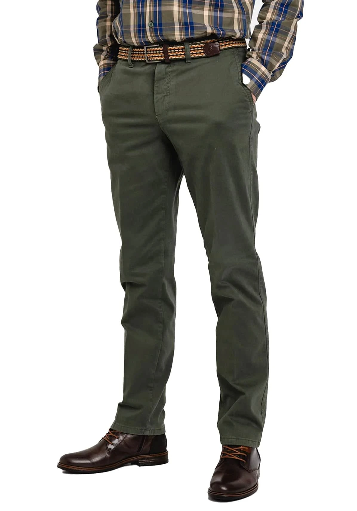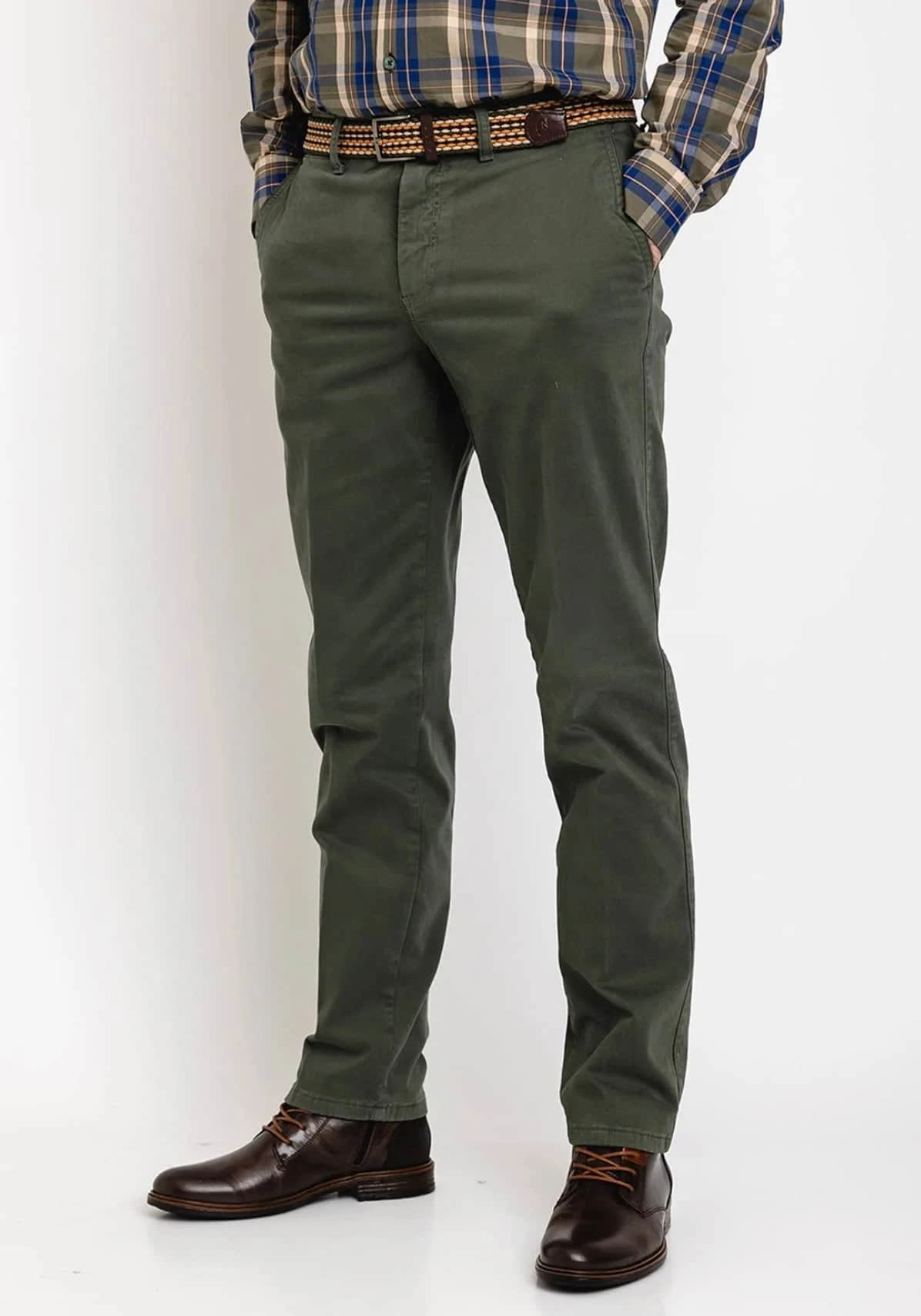LCDN By Nalo Men’s Stretch Fit Chino Trousers With Belt Yansi Green